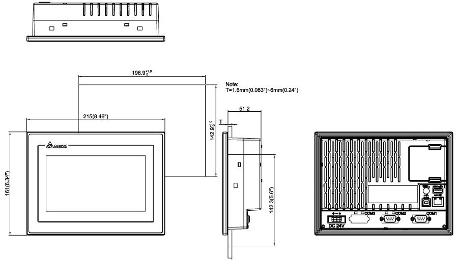 DOP-107EV | 215 x 161 x 61.2 | 196.9 x 142.9 |