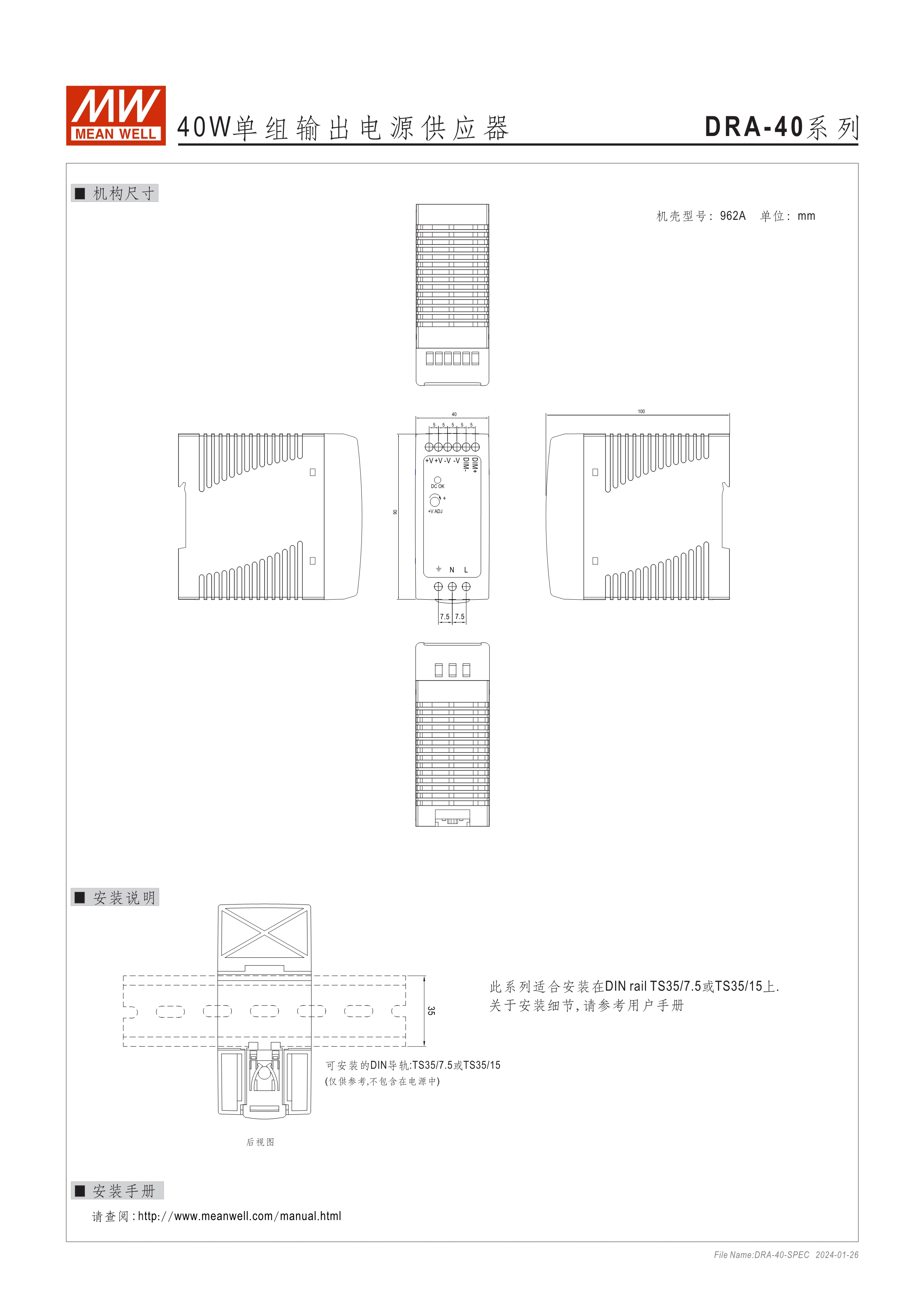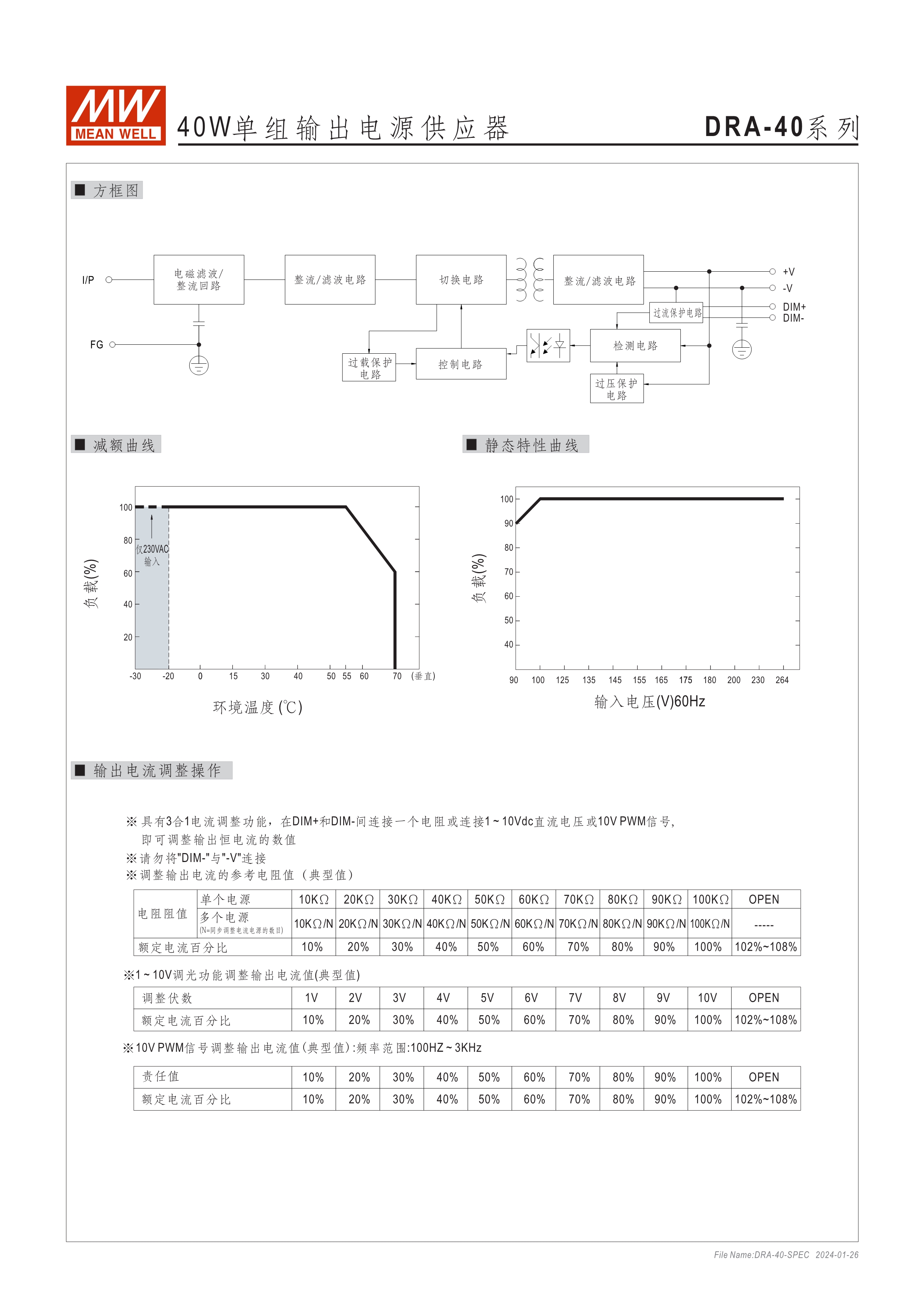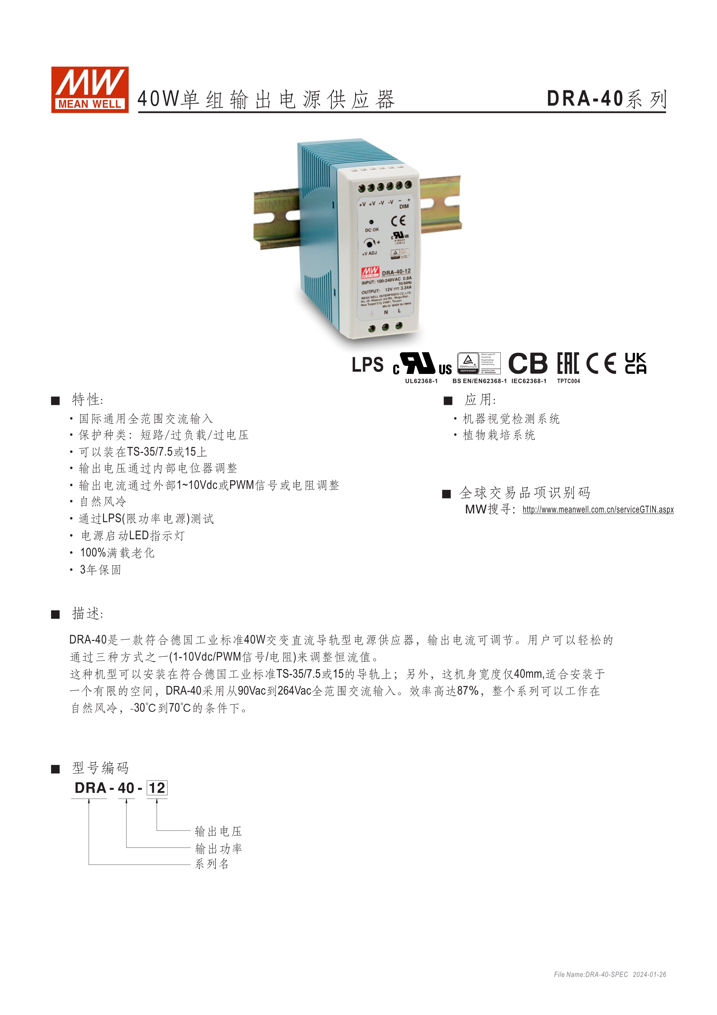 塑料機殼 單相,全范圍輸入 輸出電流可透過1~10VDC, PWM信號或電阻調(diào)設(shè)于原額定值的 10~100% 適合安裝于DIN Rail TS-35 / 7.5或15 適合于視覺檢測設(shè)備及植物栽培系統(tǒng)