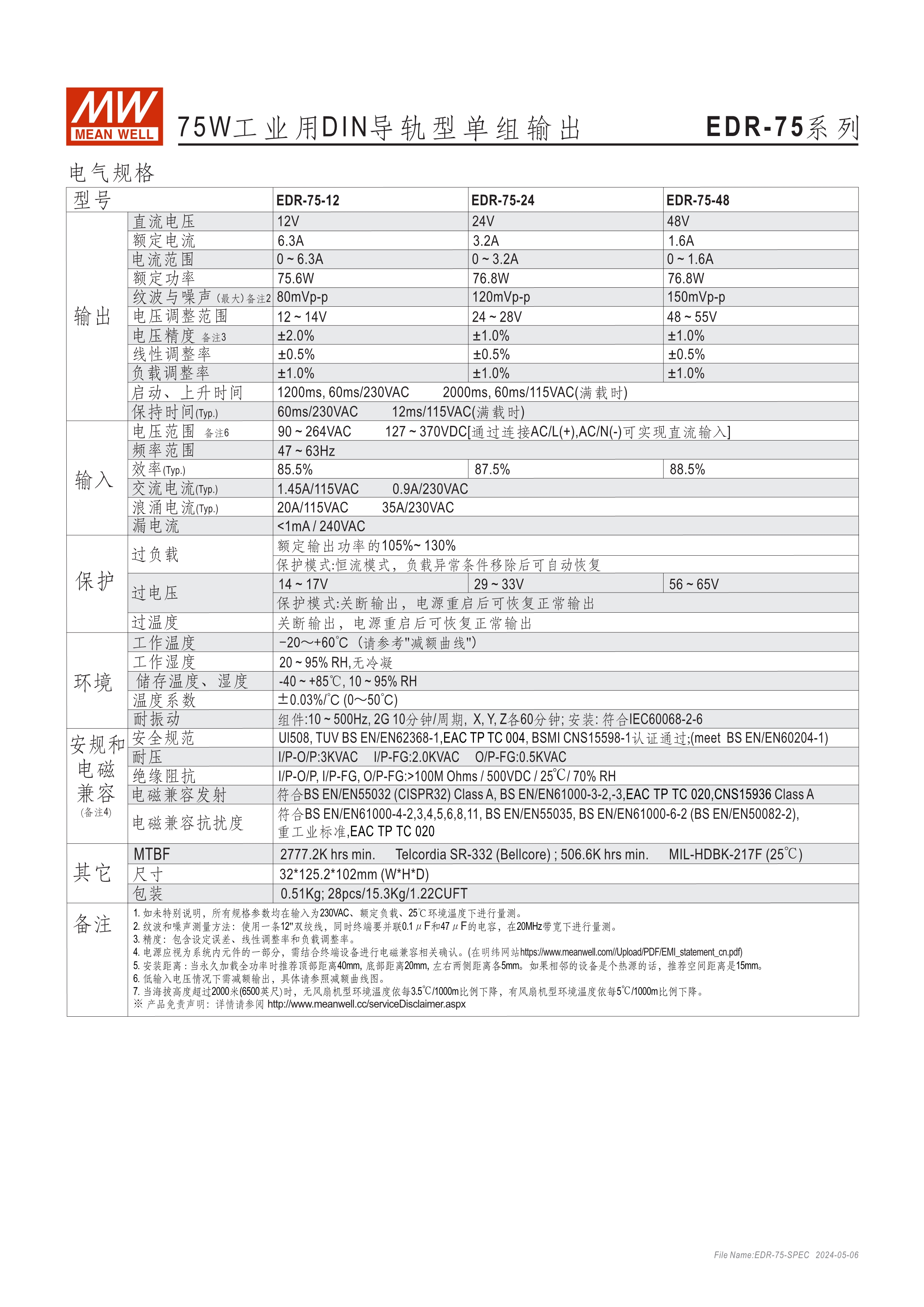 金屬殼,低價款 單相, 全范圍輸入 窄面寬設(shè)計:32~40mm EMC EN55022 class A 適合安裝于DIN rail TS-35 / 7.5或15 2年保固期