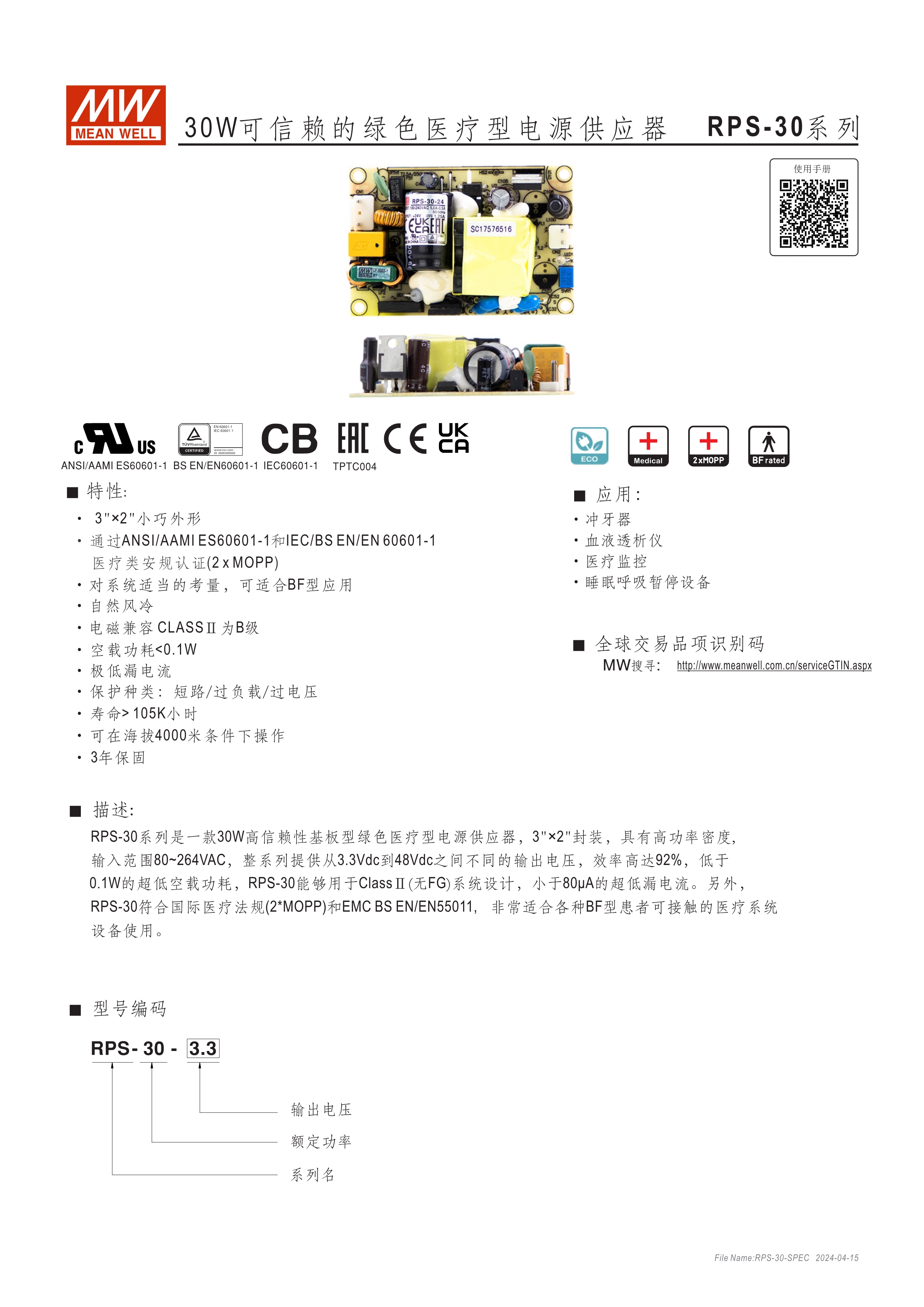 小型化尺寸 PCB式,小瓦數(shù)機型無功率因子矯正功能(PFC) 通過醫(yī)療類安規(guī)認證(2xMOPP) 低泄漏電流,適合用于非病患接觸式醫(yī)療設(shè)備 特定機型在適當系統(tǒng)條件下,適合用于BF應(yīng)用