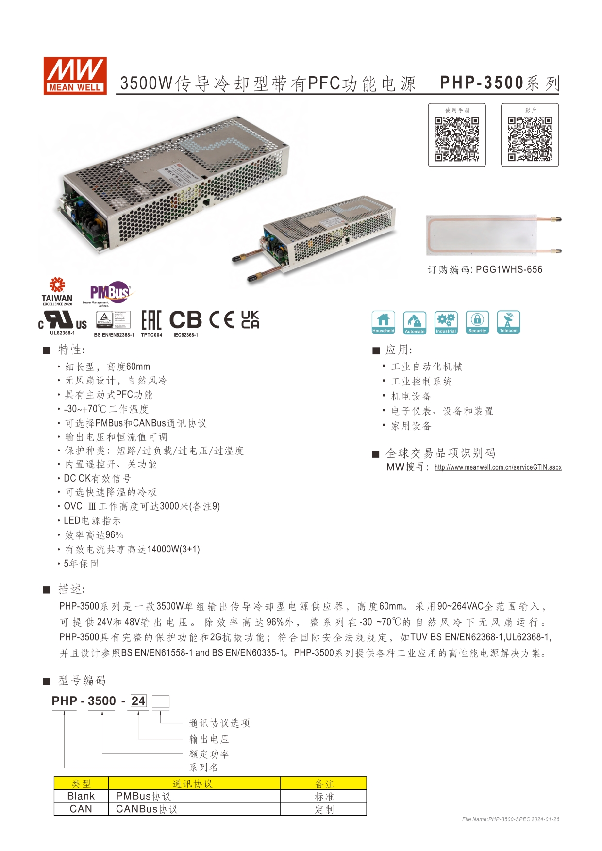 水冷散熱設計 可程序化輸出功能: 輸出電壓與輸出電流恒流點可調整 支持PMBus通訊協議 (可選配CANBus協議) 支持輸出并聯功能 HV款式為高壓輸出機型 主動式均流設計,系統(tǒng)電力高可達14000W (3+1) 可選購水冷板,ordering no.: HS-656