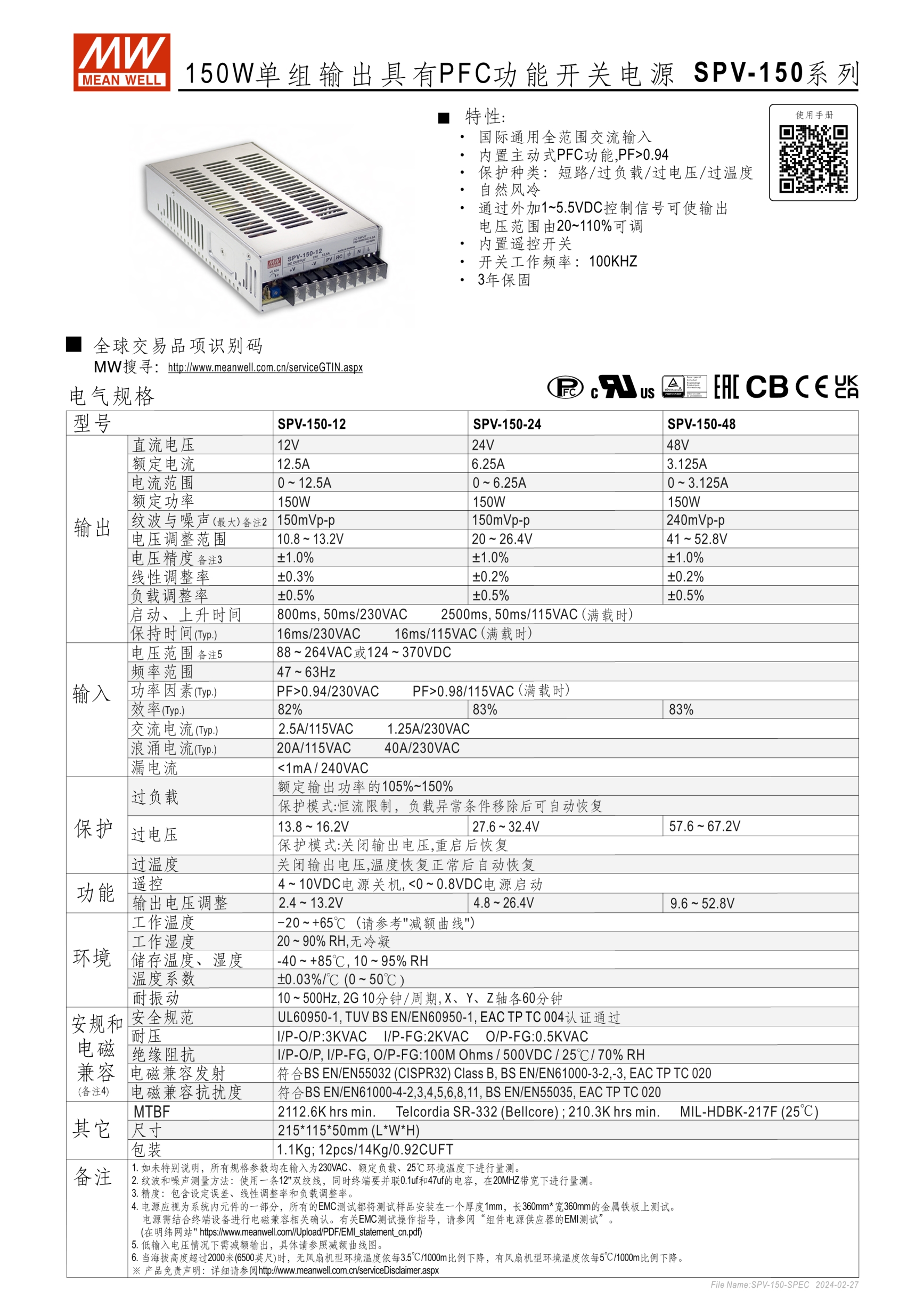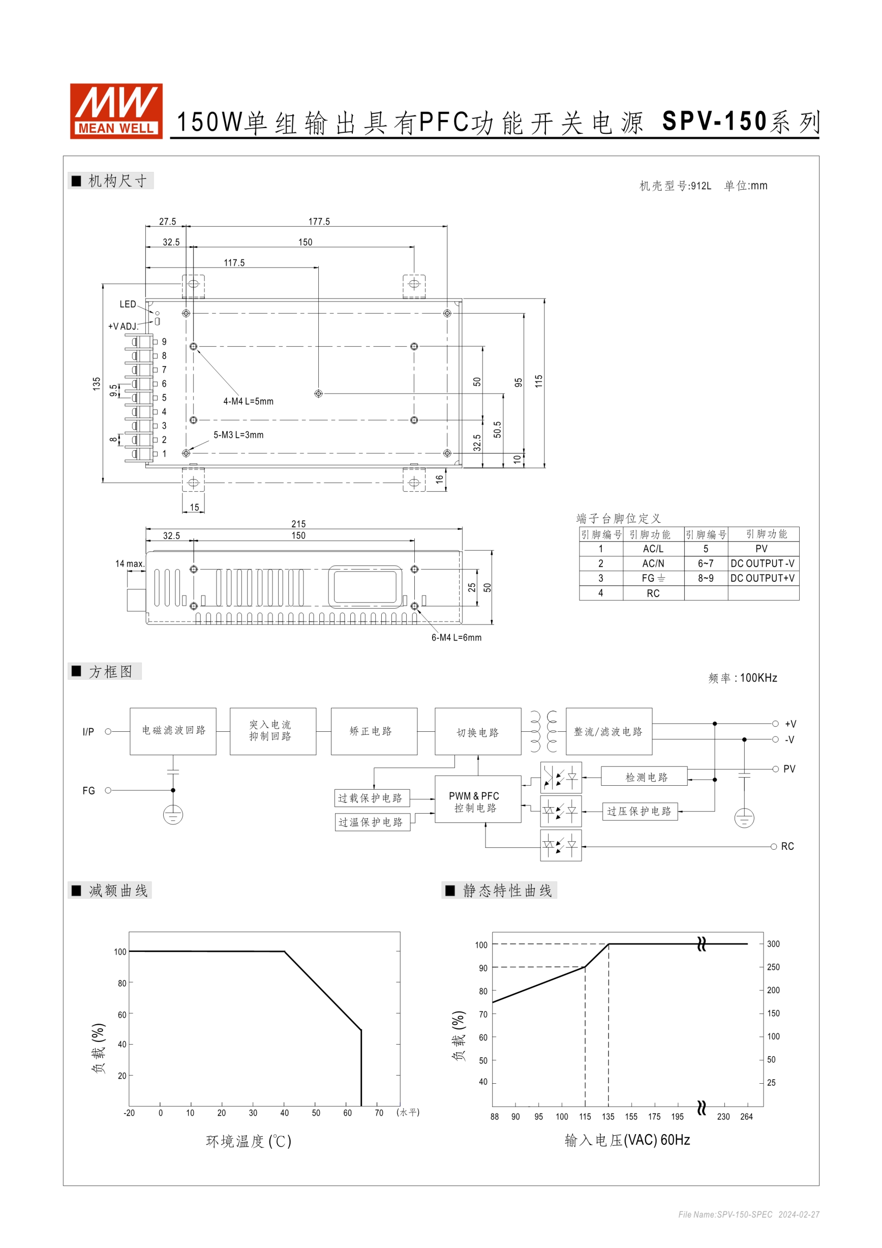 內(nèi)建主動式功率因子矯正功能(active PFC) 輸出電壓可調(diào)設于原額定值的20~110%
