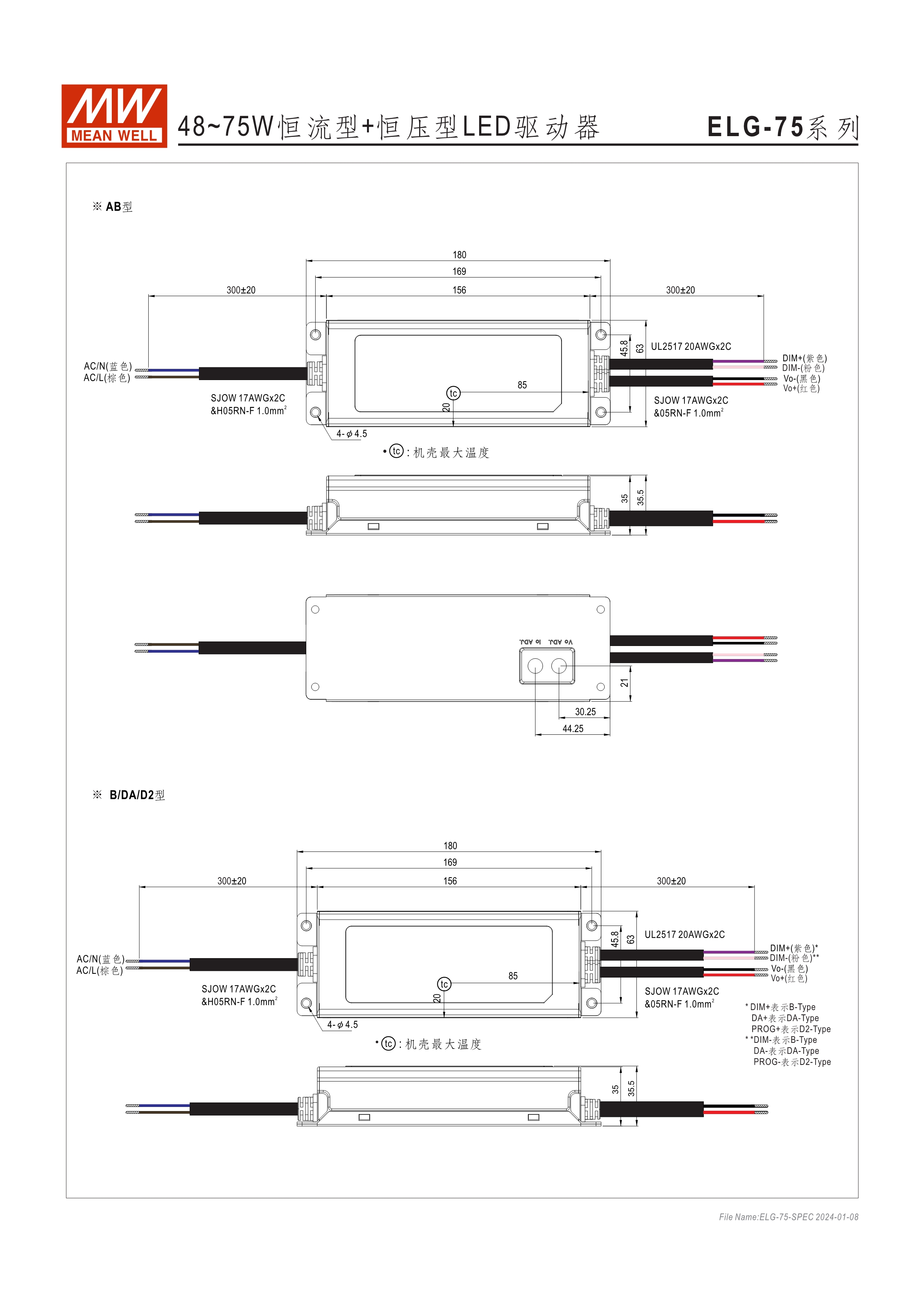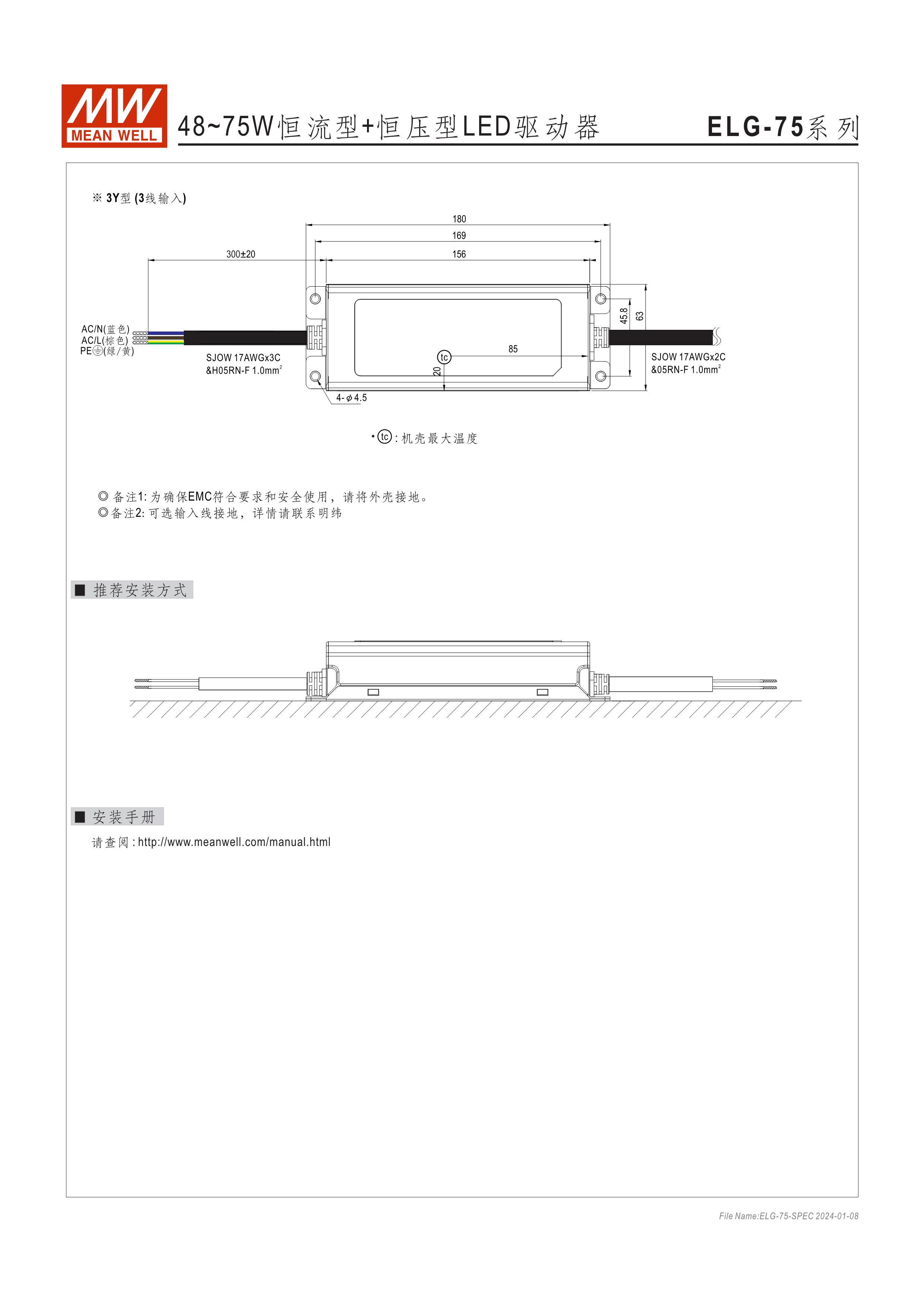 輸入范圍100~305VAC 金屬外殼,IP67/IP65防護(hù)等級可用于戶外與室內(nèi) 功能選項 : 輸出可經(jīng)由電位器調(diào)整;三合一調(diào)光(0~10Vdc或10V PWM信號或電阻,可關(guān)斷);智能定時調(diào)光;DALI;輔助直流輸出(ELG-150 BE-Type) Type "HL" LED電源適用在安裝于Class I, Division 2 類 危險地點之照明燈具 適合于LED路燈及戶外LED照明等應(yīng)用 5年保固期