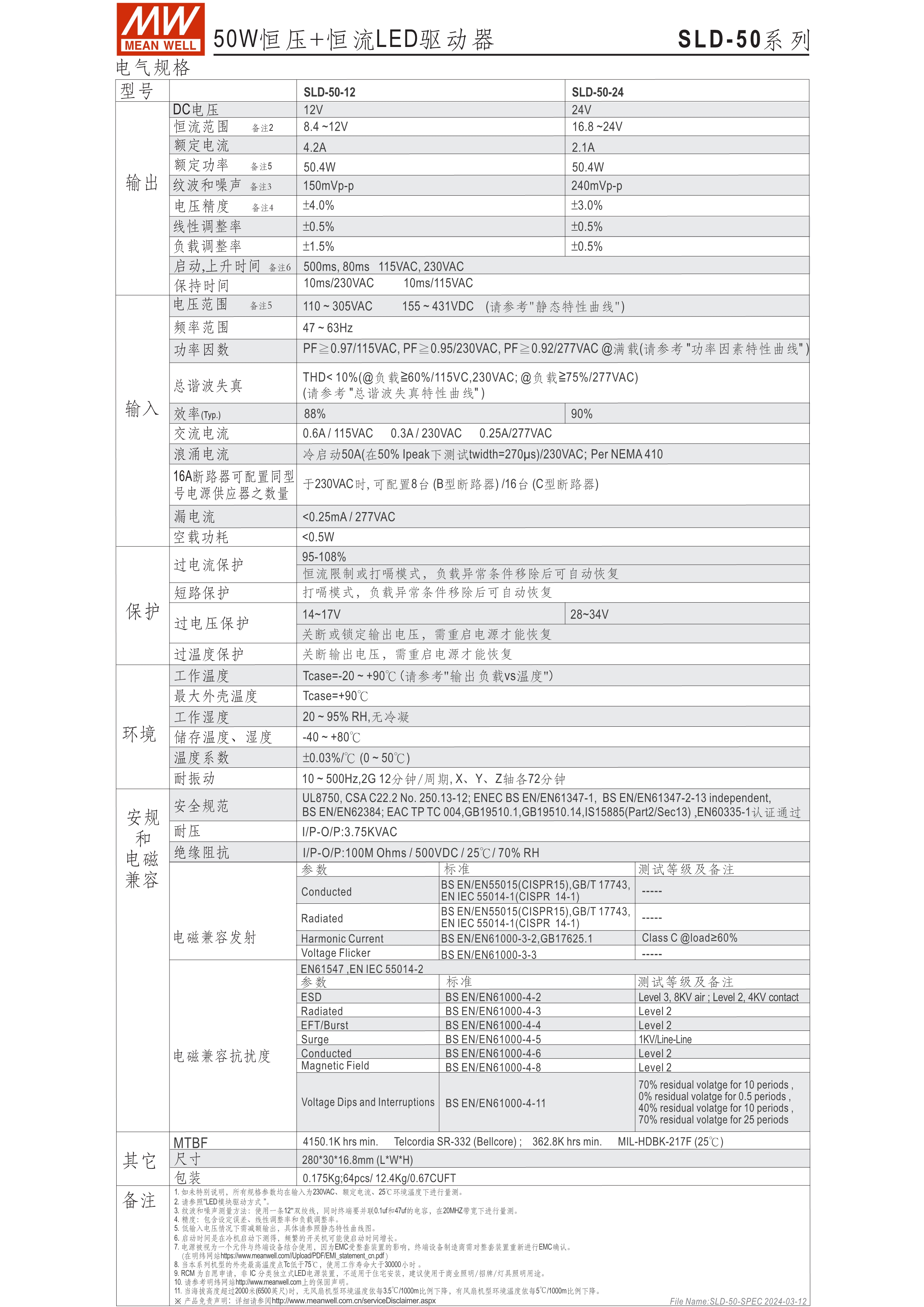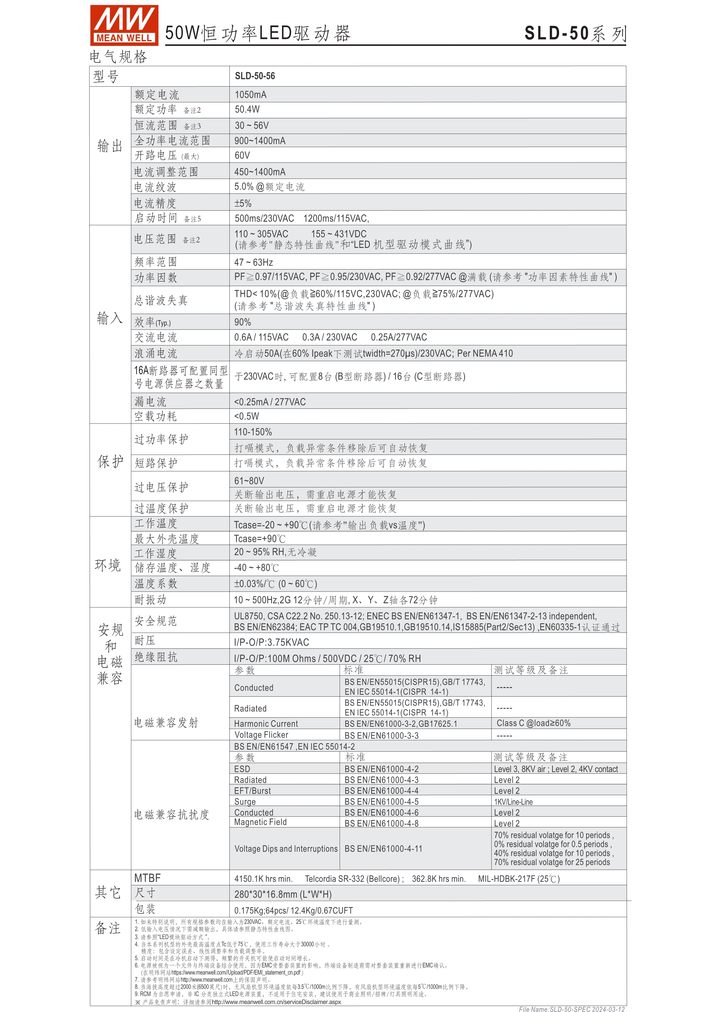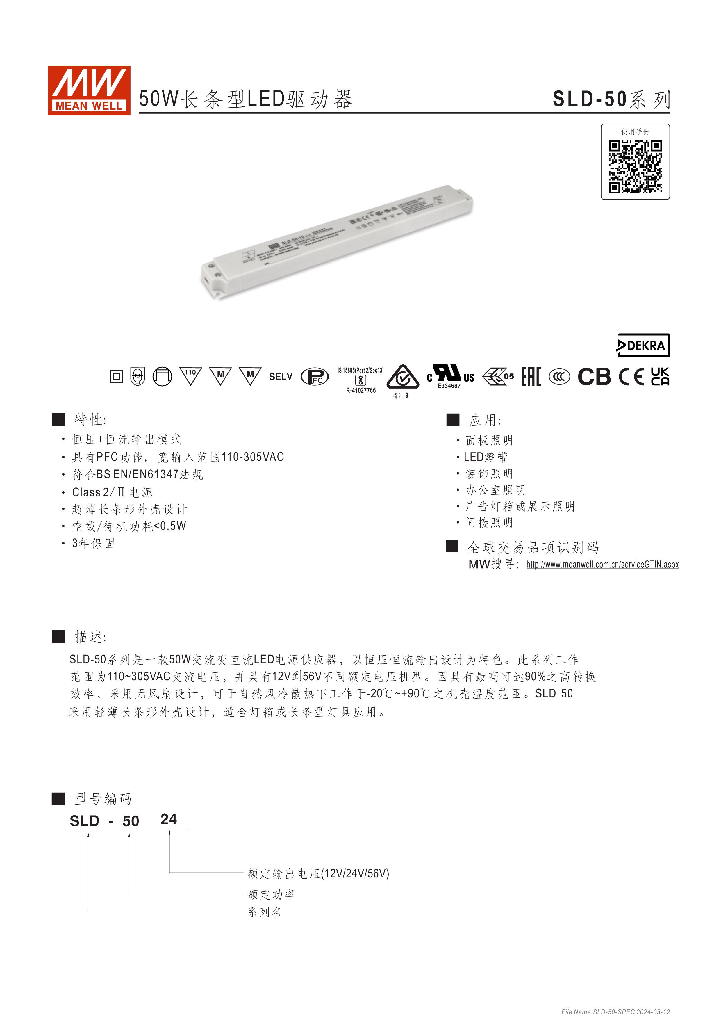 寬電壓輸入范圍110~305VAC (SLD-150為120~305VAC) 超薄(16.8mm)長(zhǎng)條型尺寸 主動(dòng)式PFC設(shè)計(jì)及輸出效率可達(dá)90% (SLD-150效率可達(dá)93%) 符合class 2/II 設(shè)計(jì)及SELV 保護(hù)功能:短路、過(guò)電壓、過(guò)溫度 3年保固 (SLD-150為5年保固)