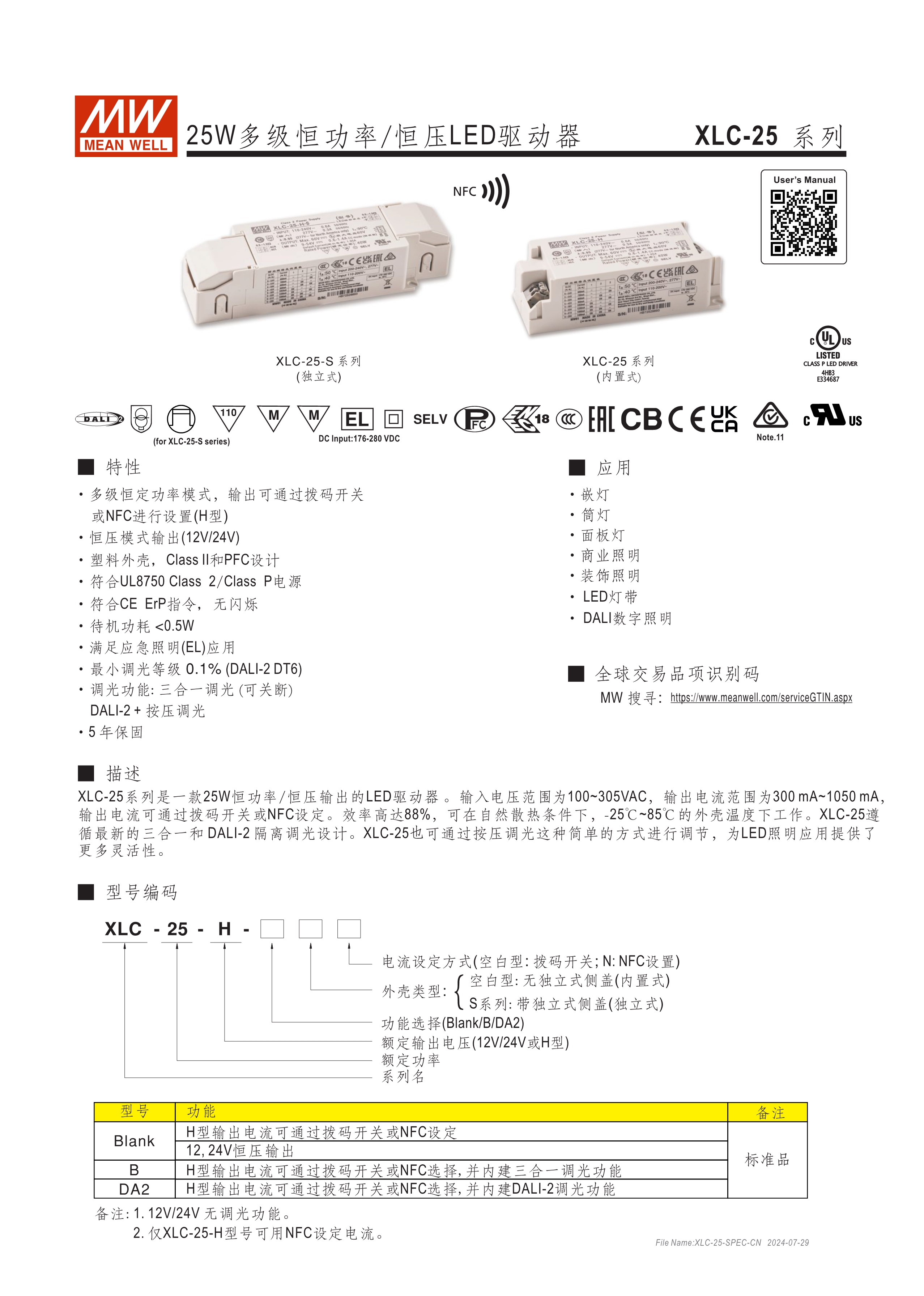 恒功率設(shè)計可寬范圍調(diào)整輸出電流(H型) 恒壓輸出機(jī)型可選12V/24V/48V 電流多段可調(diào)(快插端子式) 全電壓輸入110~305V AC 具PFC功能 塑膠殼雙重絕緣及Class II/2設(shè)計 符合IEEE 1789及Erp無頻閃標(biāo)準(zhǔn) 待機(jī)功耗<0.5W 最低調(diào)光亮度<0.1% (DALI-2 DT6) 符合應(yīng)急照明(EL)功能 調(diào)光功能:三合一/DALI-2、IoT/KNX(選配) 輸出與調(diào)光線路間符合隔離設(shè)計 獨(dú)立型或內(nèi)置型LED驅(qū)動電源可選 5年保固及>50,000 hrs壽命