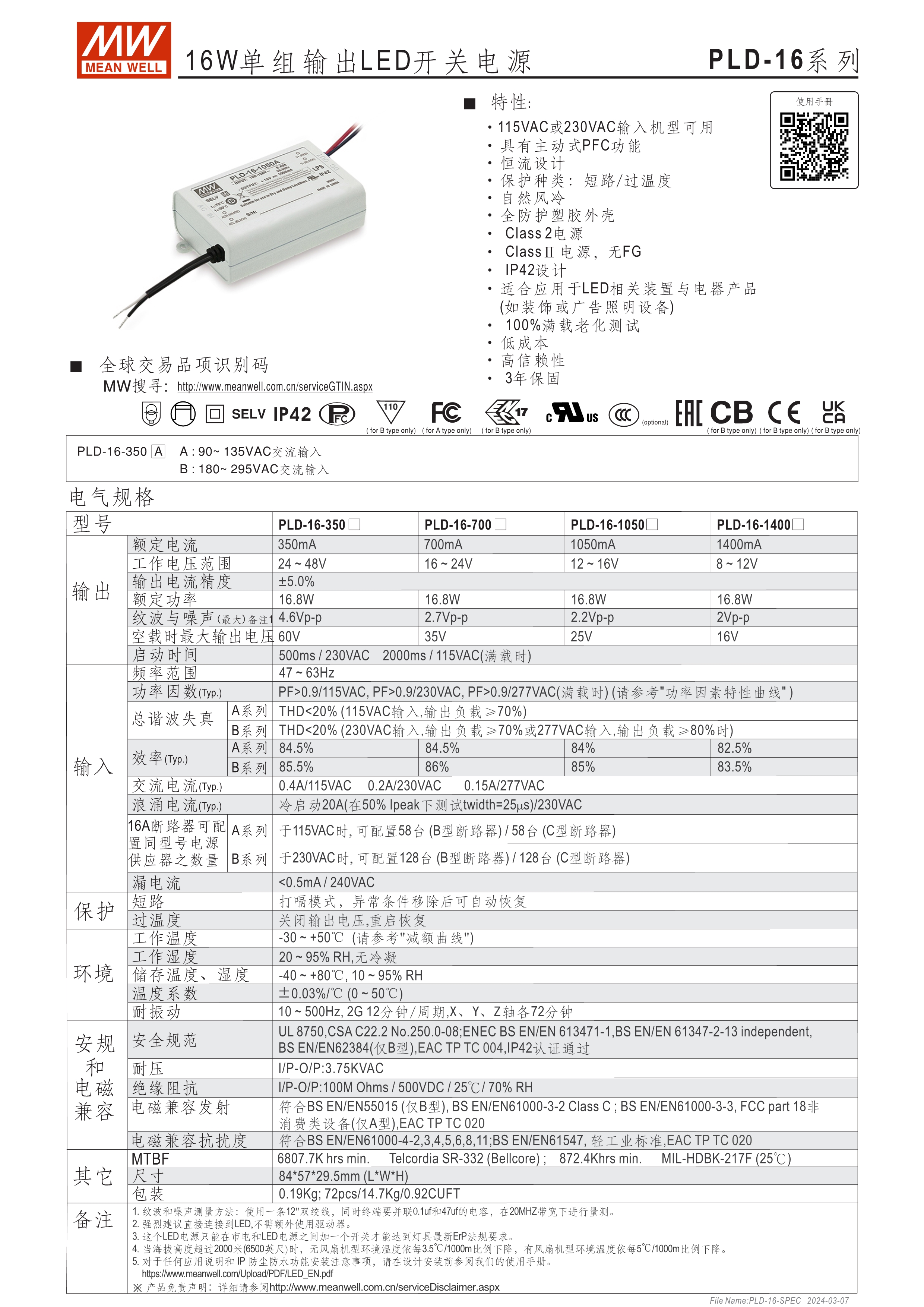 16W: 90~135VAC或180~295VAC 25W: 90~295VAC 40/60W: 180~295VAC 內(nèi)建主動(dòng)式功率因子矯正功能(active PFC) 塑料外殼,IP42防護(hù)等級(jí) Class II設(shè)計(jì),無(wú)FG 恒流設(shè)計(jì) 適合于LED室內(nèi)照明相關(guān)應(yīng)用