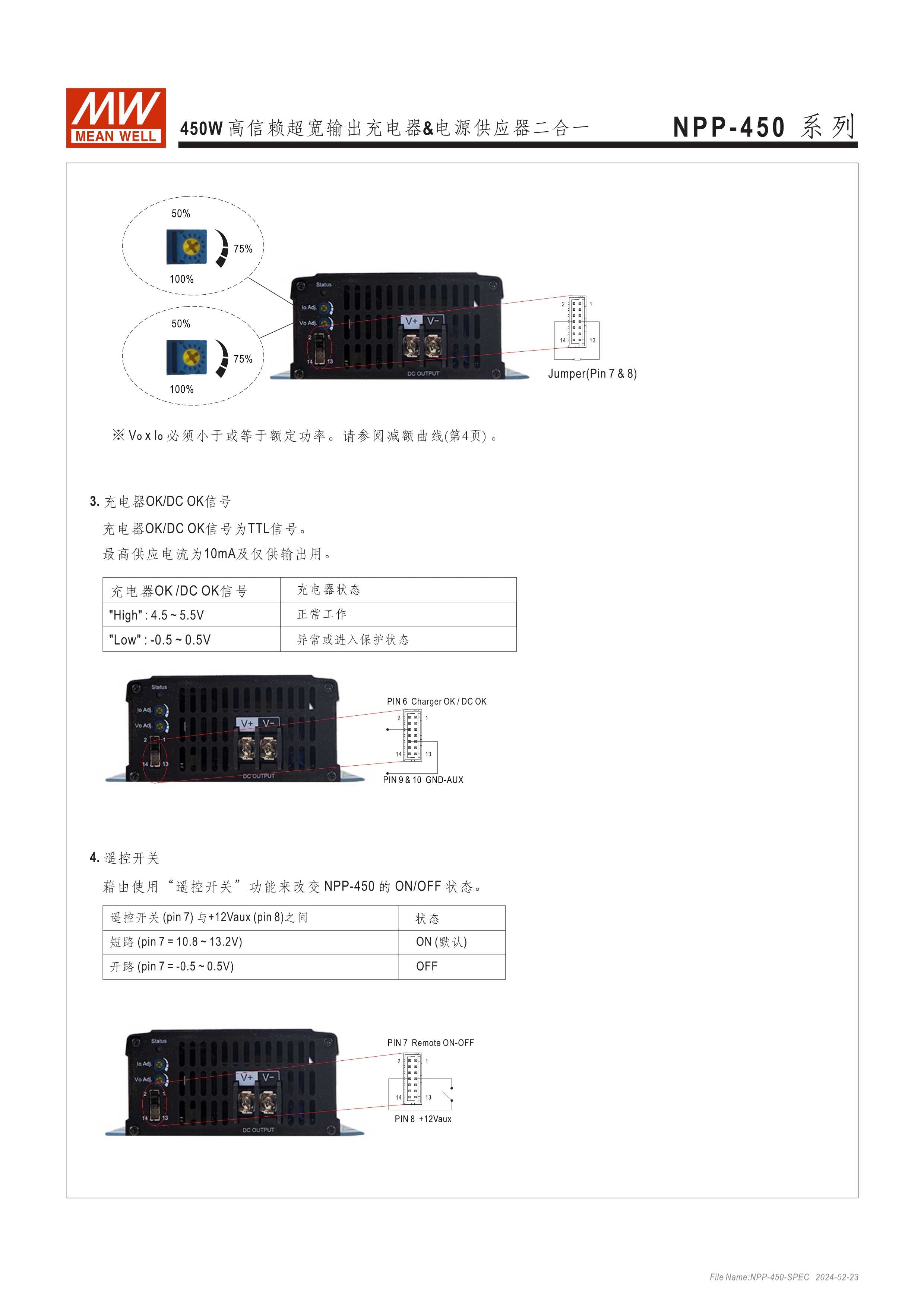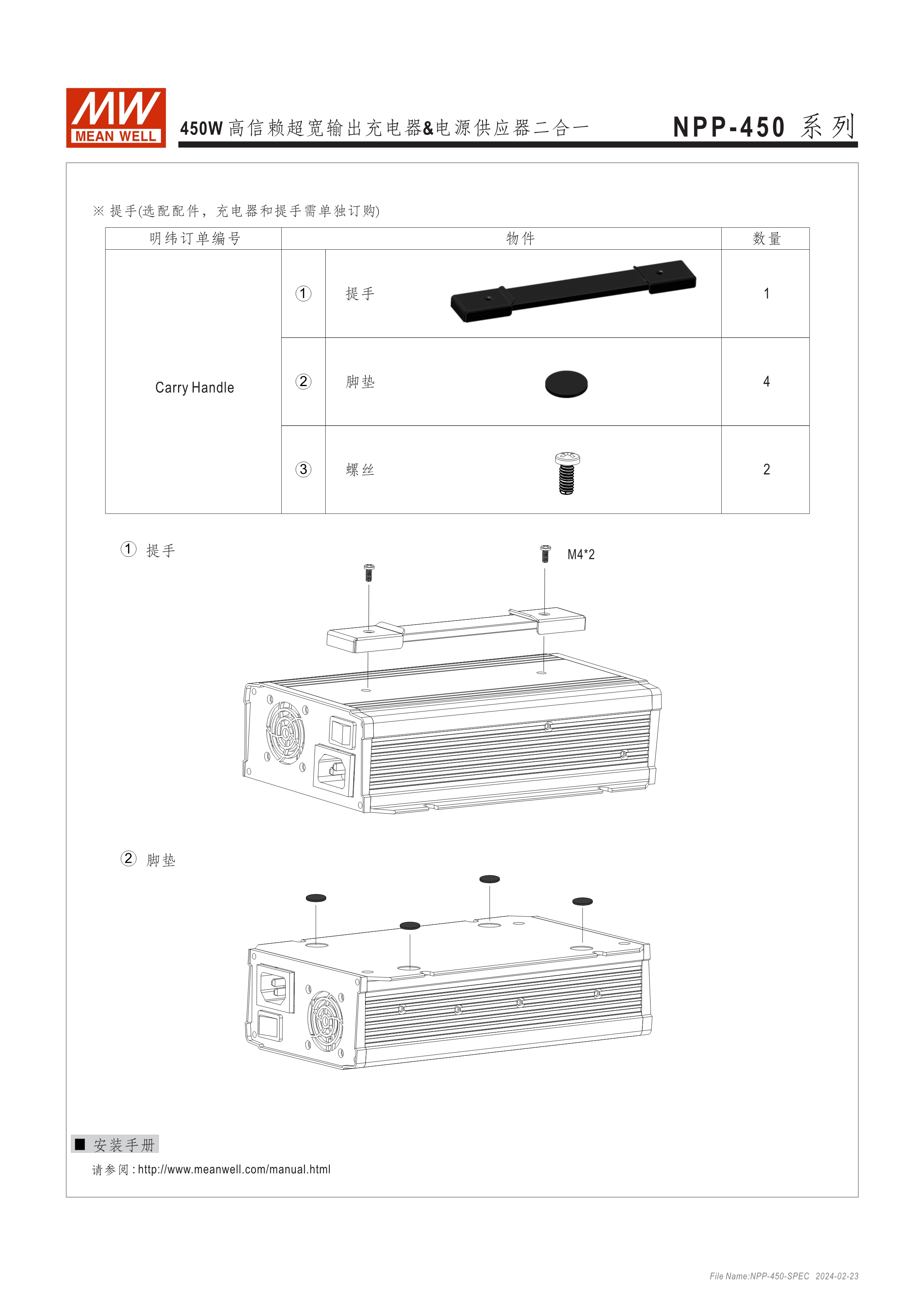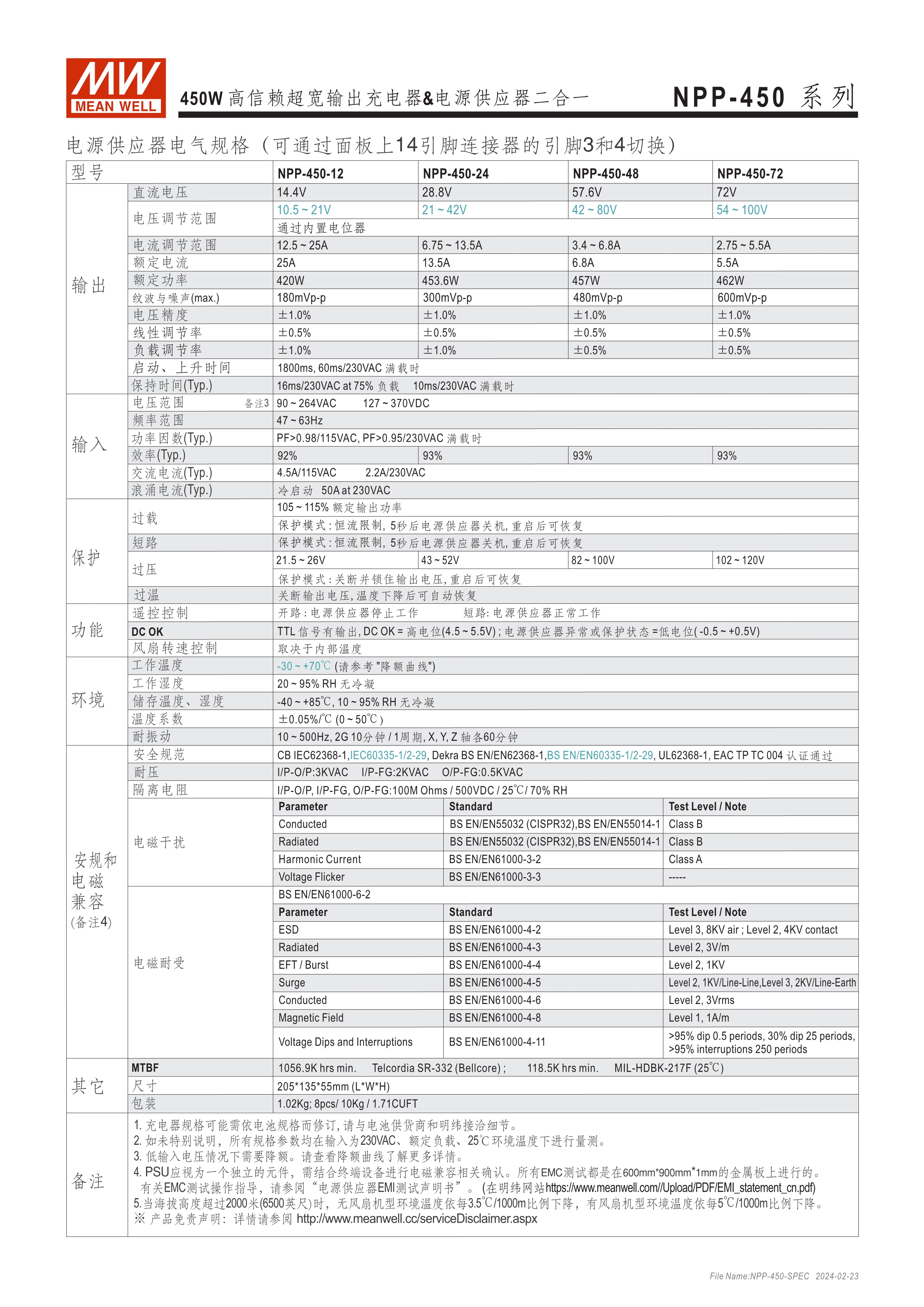 可彈性切換充電器或電源供應(yīng)器 3段式充電,僅適用鉛酸電池 可調(diào)輸出電壓 [由面板VR可調(diào)整10.5~21V, 21~42V, 42~80V, 54~100V(僅NPB-450)] 可調(diào)輸出電流 (由面板VR調(diào)整50~100%) -30~+70oC寬溫度,使用環(huán)境受限少 保護(hù)功能:短路、過壓、過溫度 可另購(gòu)手提把手 (Order No.: Carry Handle) 通過UL/EN62368-1、IEC/EN62368-1/-2-29雙安規(guī)認(rèn)證 3年保固