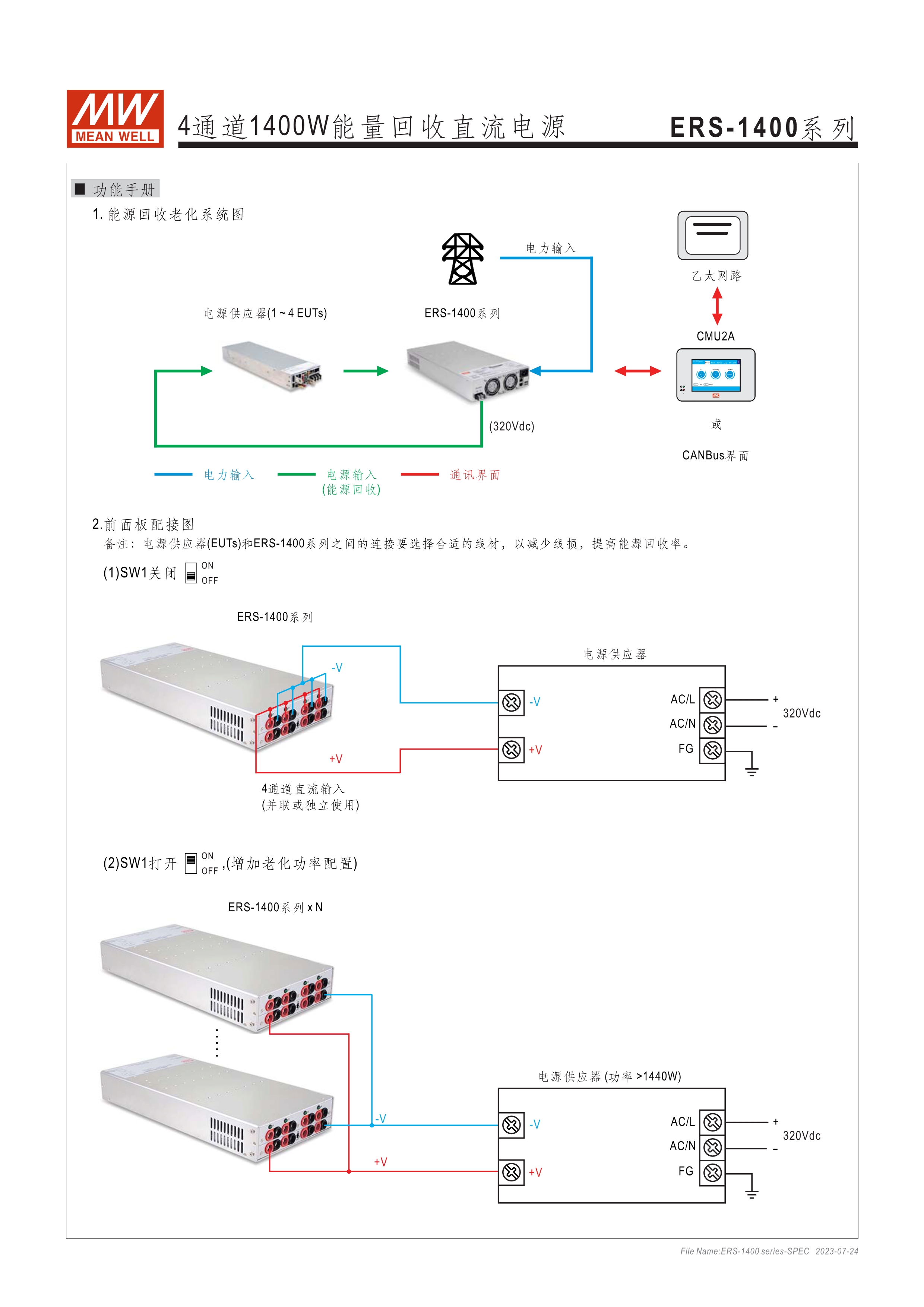 寬輸入電壓范圍10~60VDC/60~380VDC(視機(jī)型而定) 效率高達(dá)91% 靈活配置的模塊化設(shè)計 彈性的CC/CV/CP操作模式 通過CMU2A實現(xiàn)CAN總線協(xié)議遠(yuǎn)程控制和監(jiān)控控制 可連接最多64臺ERS-1400系列 保護(hù)功能: 過電壓、欠電壓、過熱、通信錯誤 3年保固期