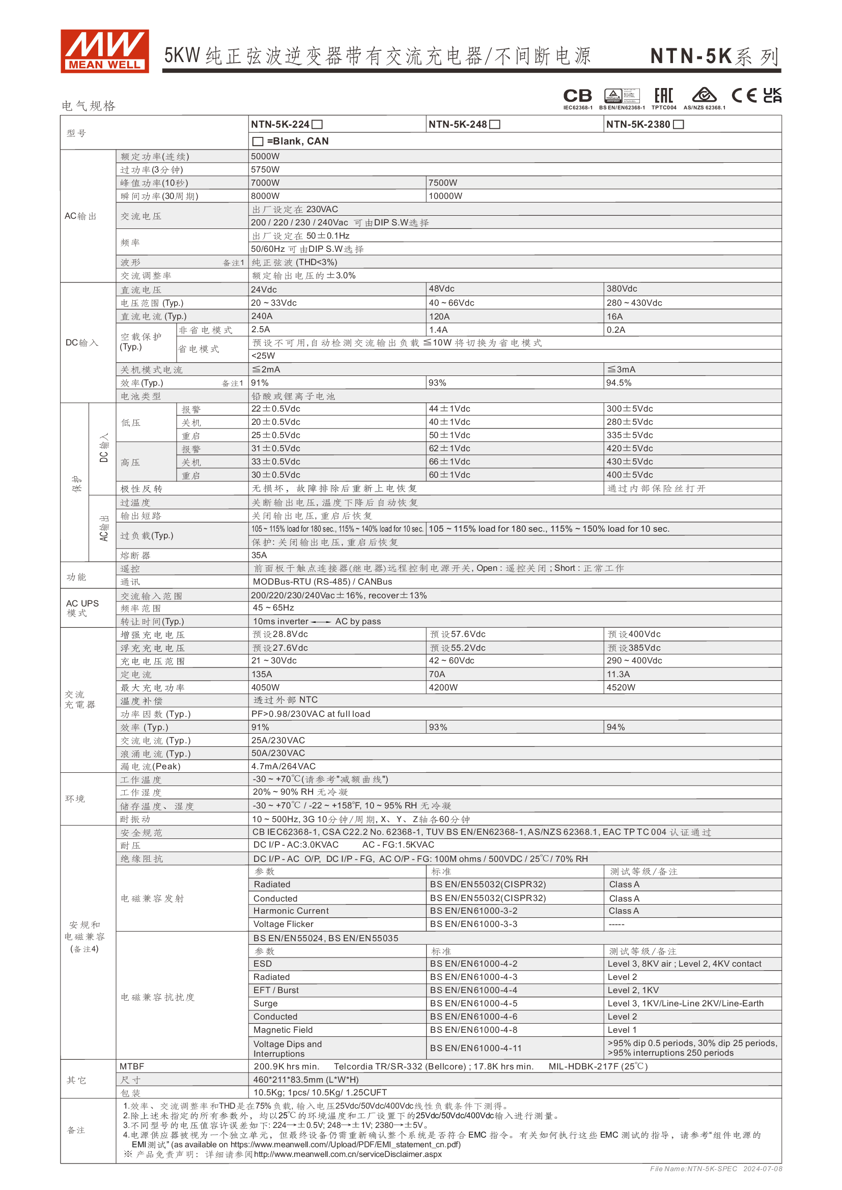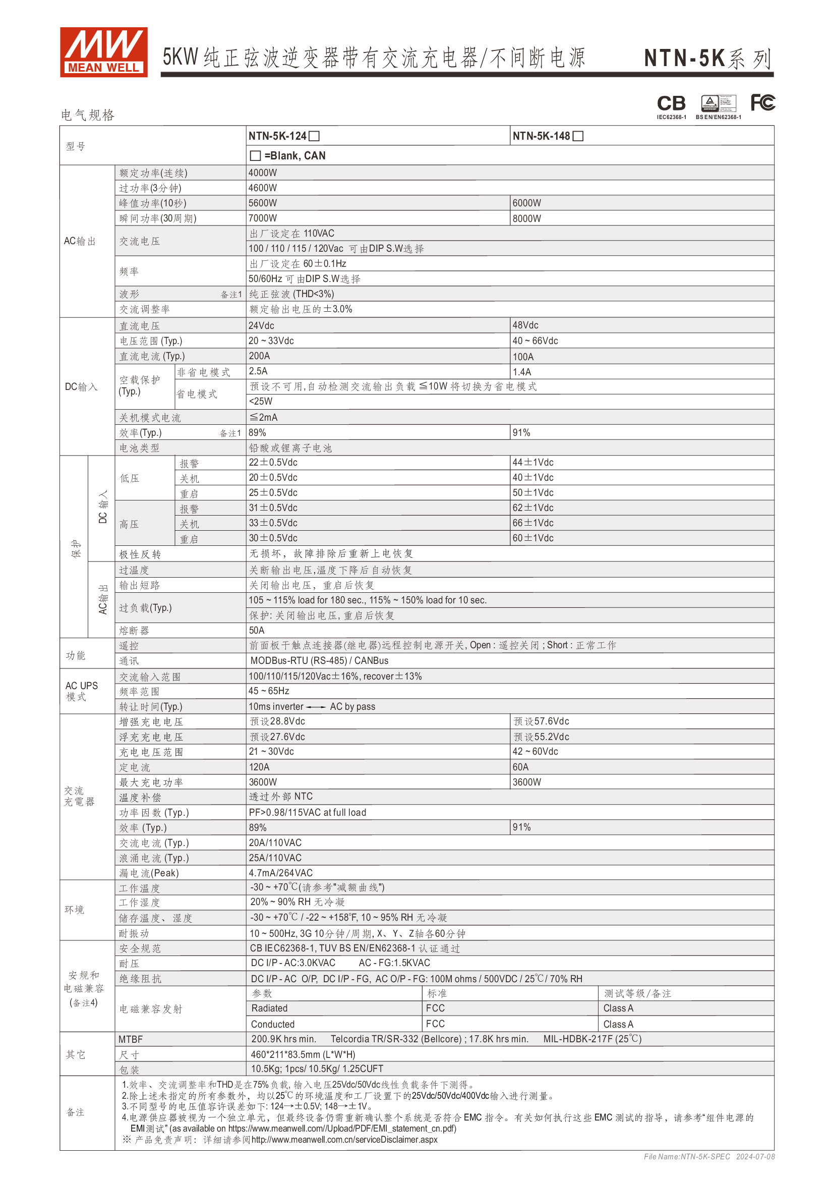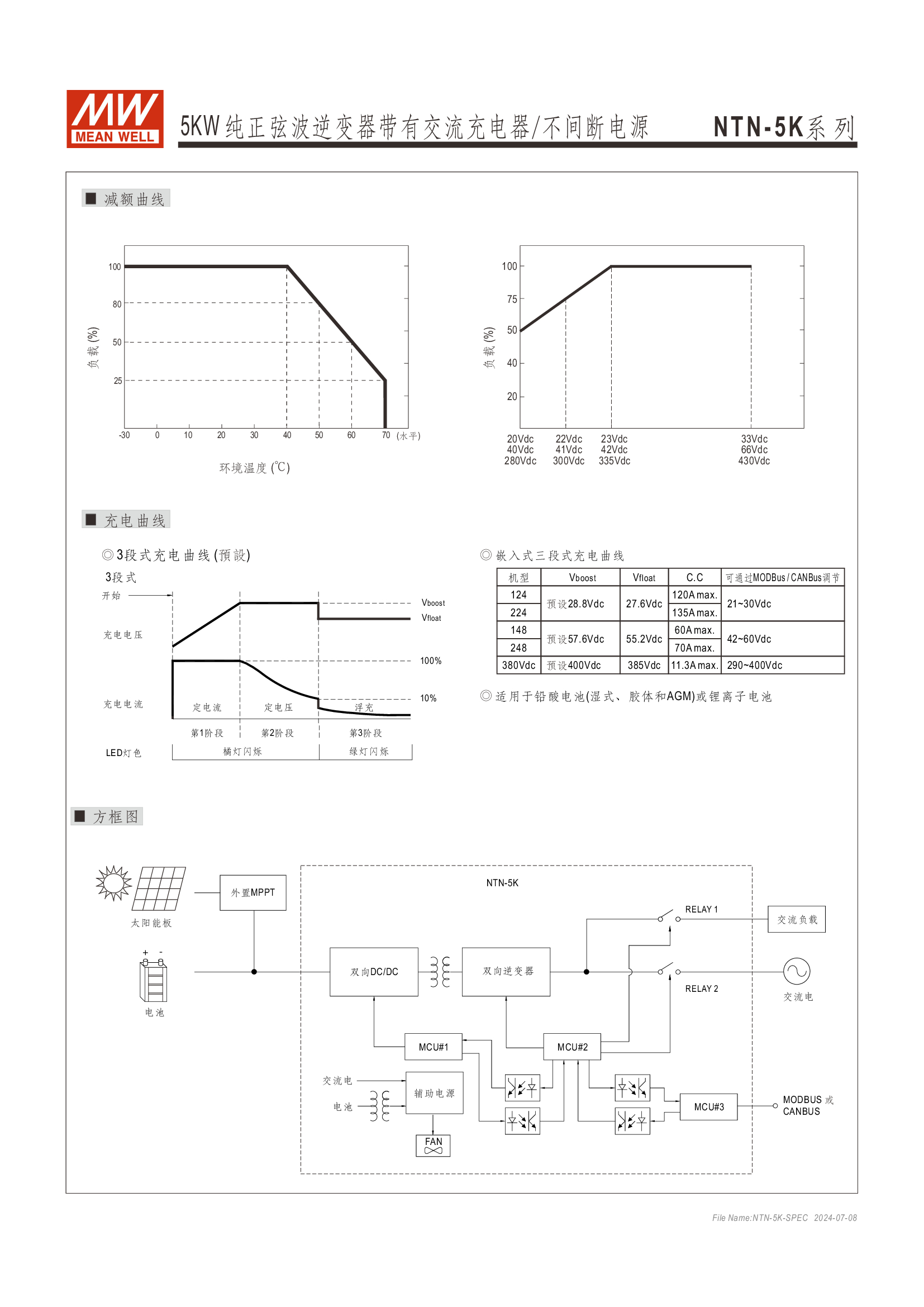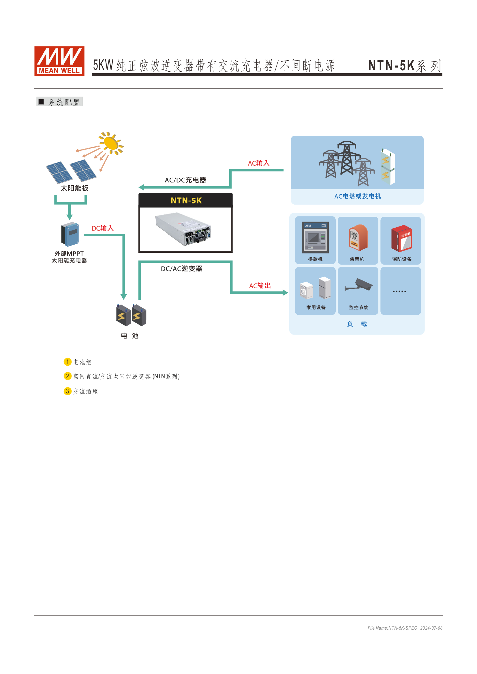 多功能一體機(jī) (AC-DC 充電器 + DC-AC 逆變供載 + AC 旁路供載) AC 市電充電最高可達(dá) 135A /4KW 可提供瞬間功率達(dá) 10KW 并聯(lián)同步運(yùn)行高達(dá) 30KW(5+1 機(jī)組) 多重智能保護(hù)功能: 直流輸入:極性反接/ 低壓告警與關(guān)機(jī)/ 過(guò)壓 /電池過(guò)放電保護(hù) 交流輸出:短路/ 過(guò)載/ 過(guò)溫 內(nèi)建 MODBus 或 CANBus 通訊監(jiān)控 5 年保固