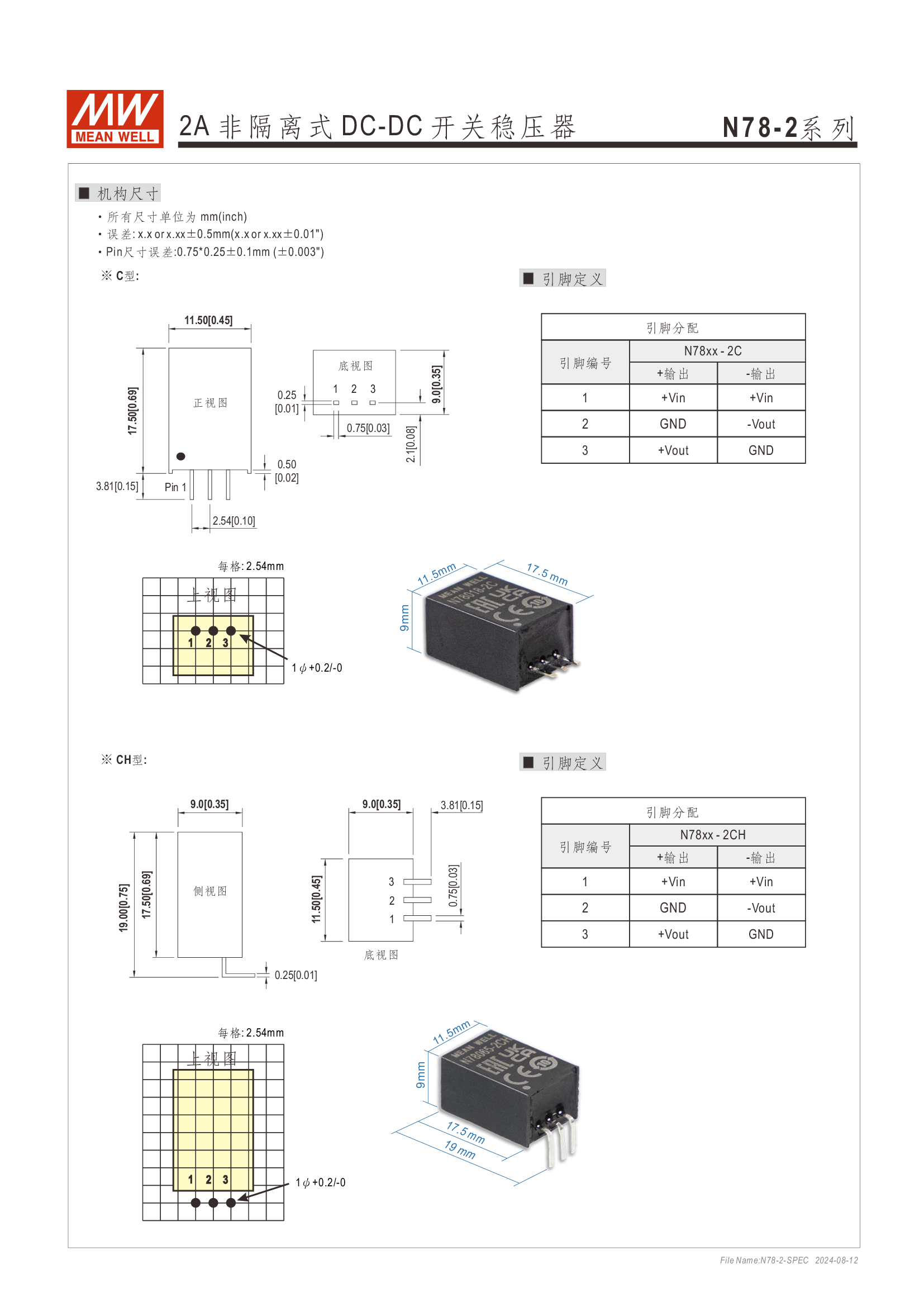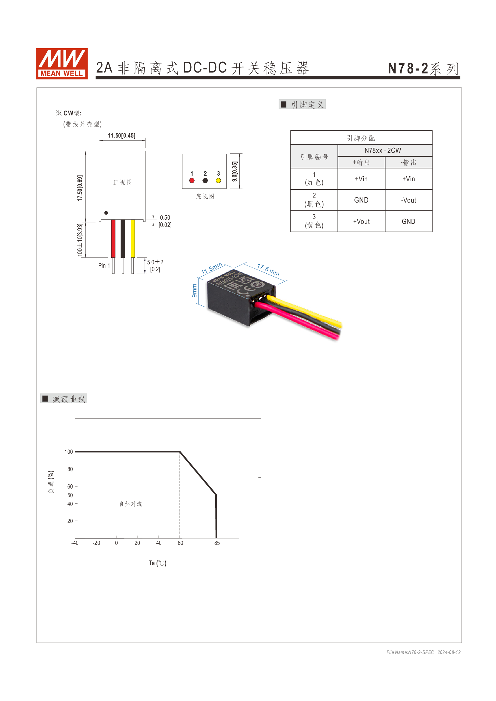 Pin-out 兼容 LM78xx/LM79xx 線性穩(wěn)壓器 效率高達(dá) 96%、無須散熱片 寬輸入范圍最高可達(dá) 32V 支援負(fù)輸出 工作溫度范圍:-40 ~ +85oC 符合 BS EN/EN55032 輻射 B 類、無需另加組件 保護(hù)種類:短路/過負(fù)載/過溫度 3 年保固