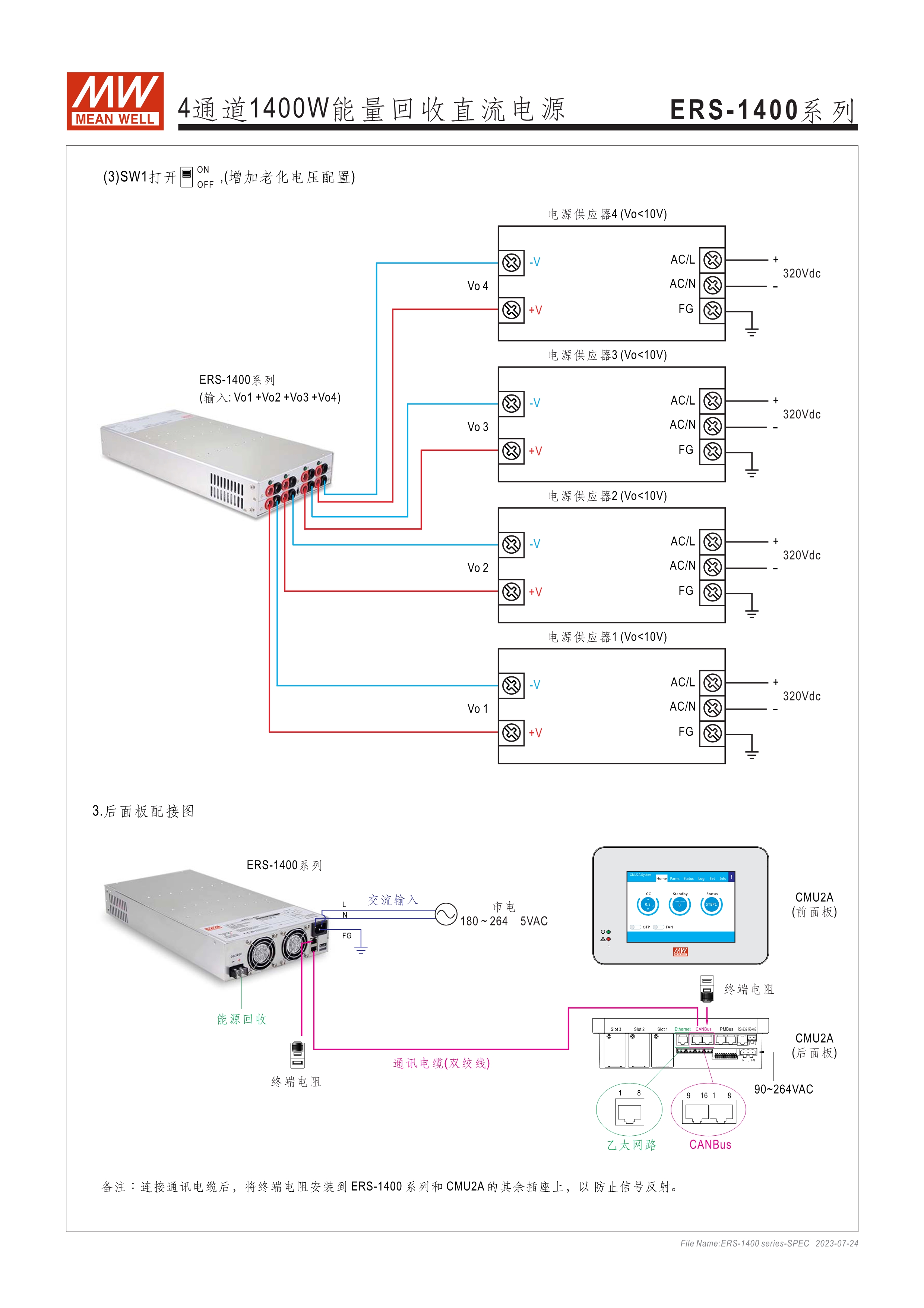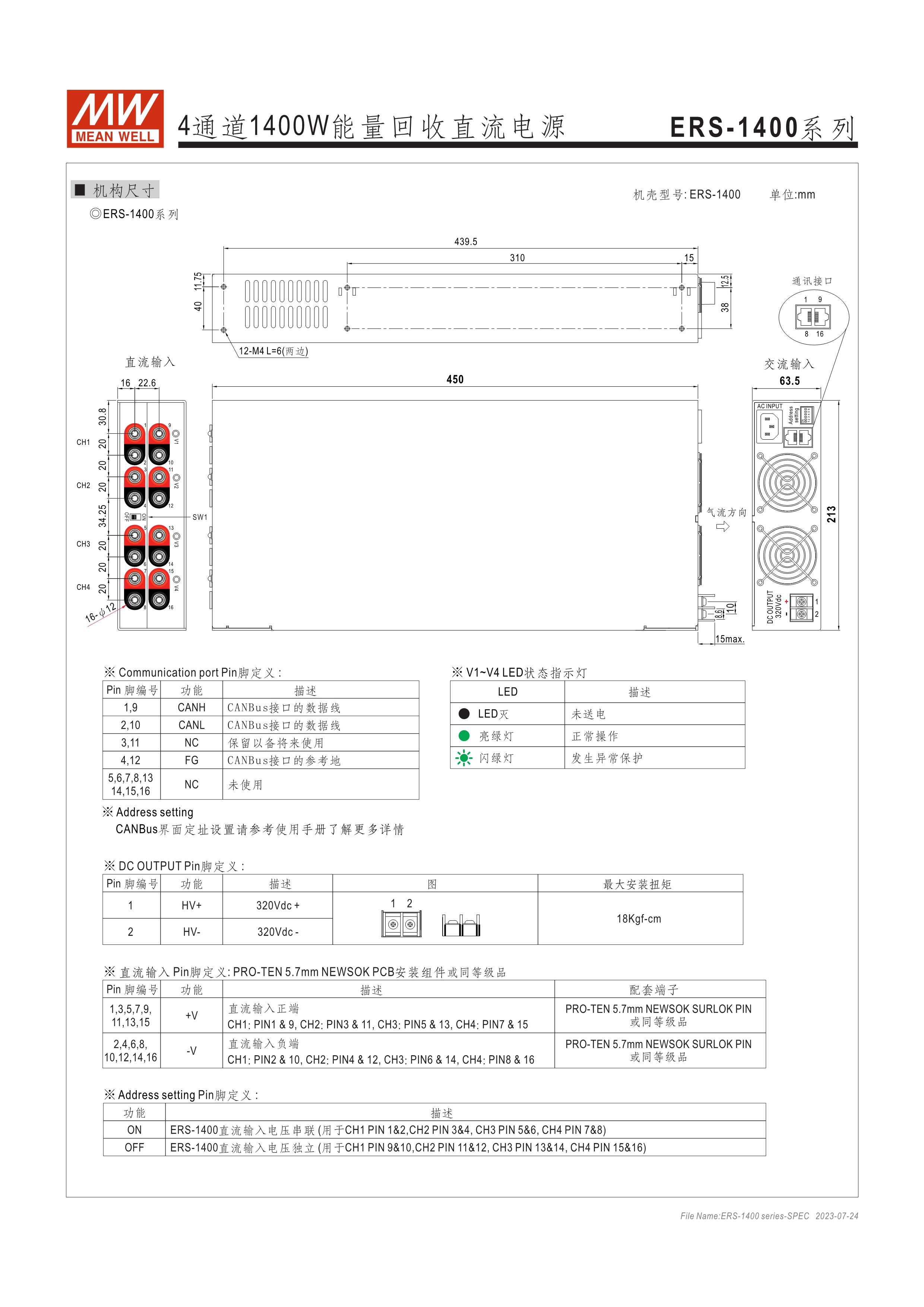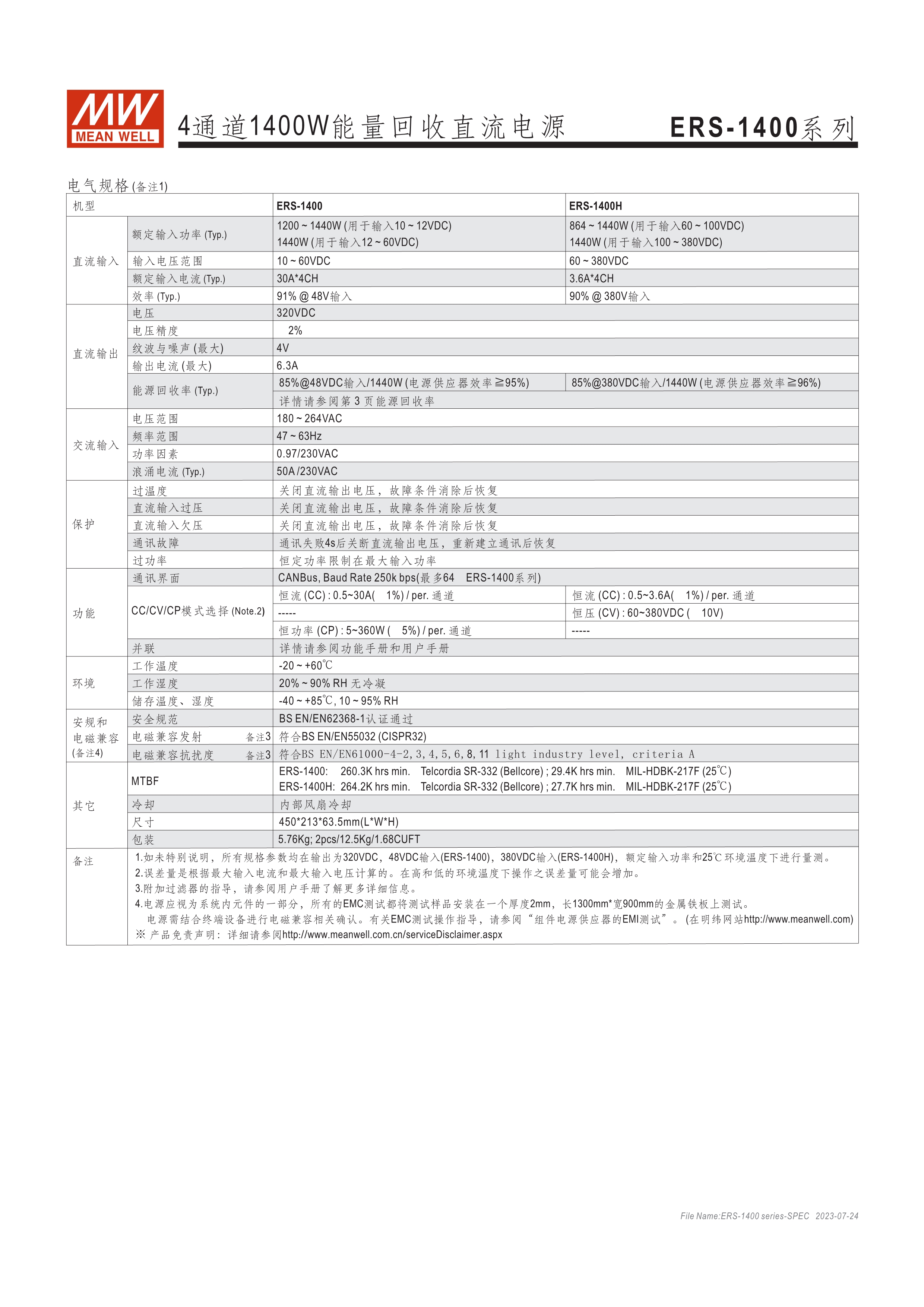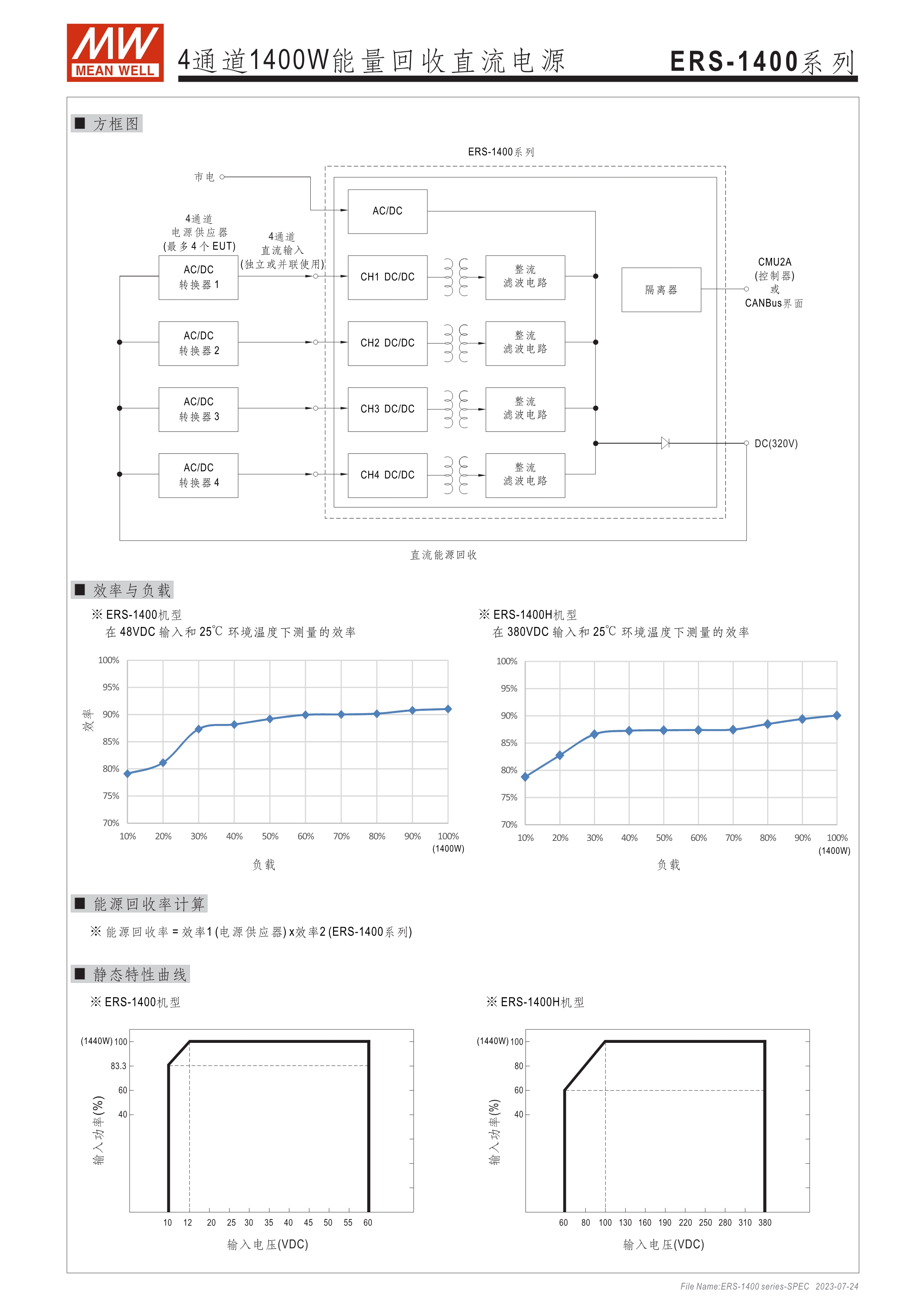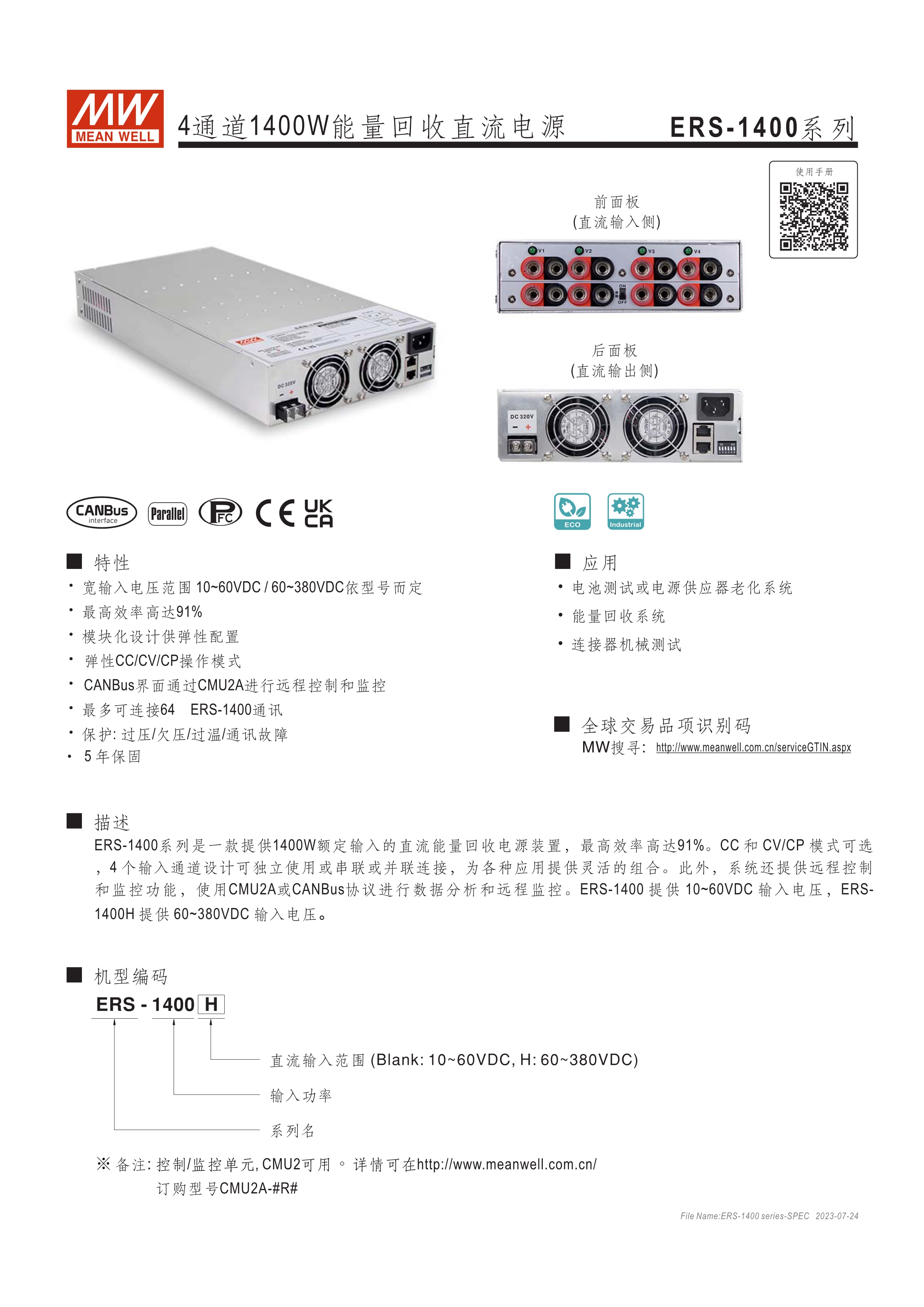 寬輸入電壓范圍10~60VDC/60~380VDC(視機型而定) 效率高達(dá)91% 靈活配置的模塊化設(shè)計 彈性的CC/CV/CP操作模式 通過CMU2A實現(xiàn)CAN總線協(xié)議遠(yuǎn)程控制和監(jiān)控控制 可連接最多64臺ERS-1400系列 保護(hù)功能: 過電壓、欠電壓、過熱、通信錯誤 3年保固期