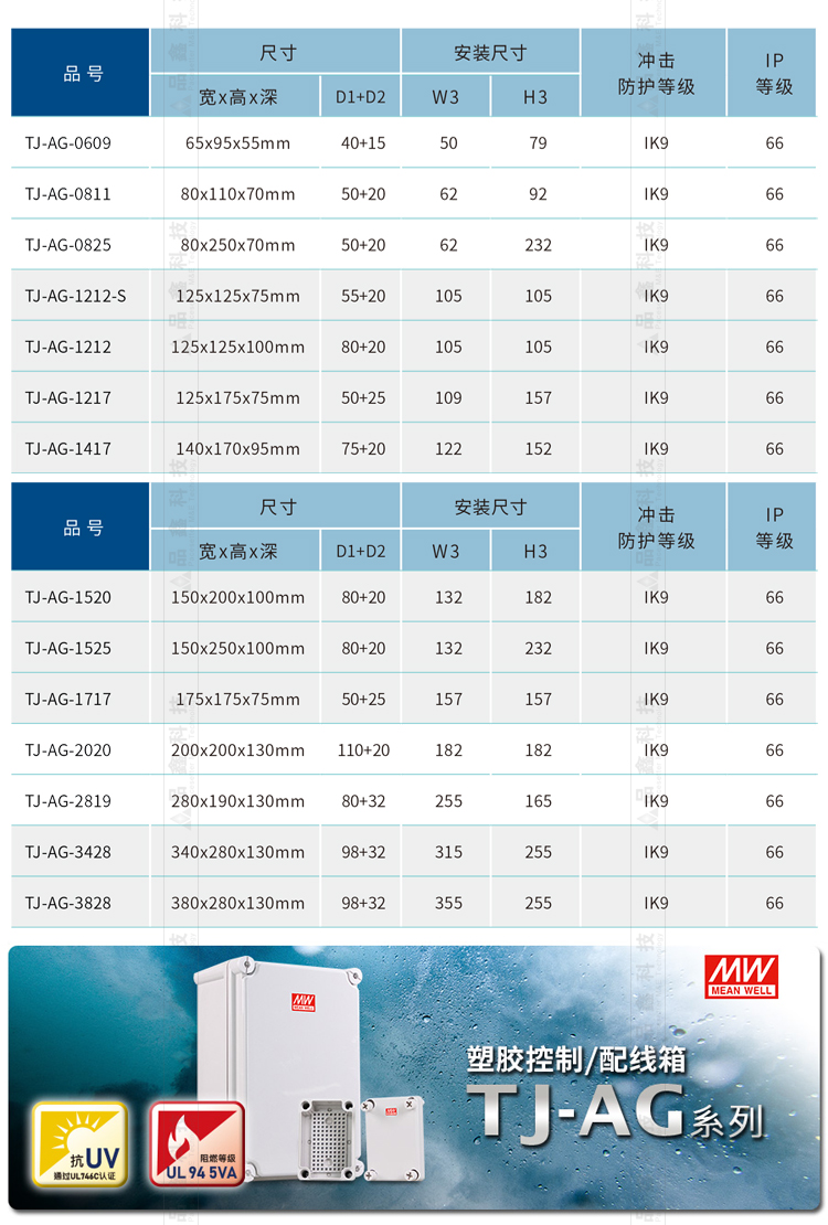 TJ-AG系列 明緯聯(lián)源精密塑料配線箱 IP66防水防塵配線控制箱 IK9