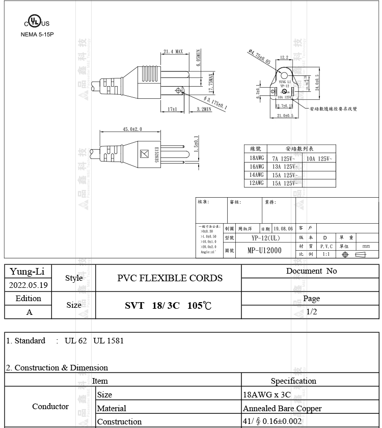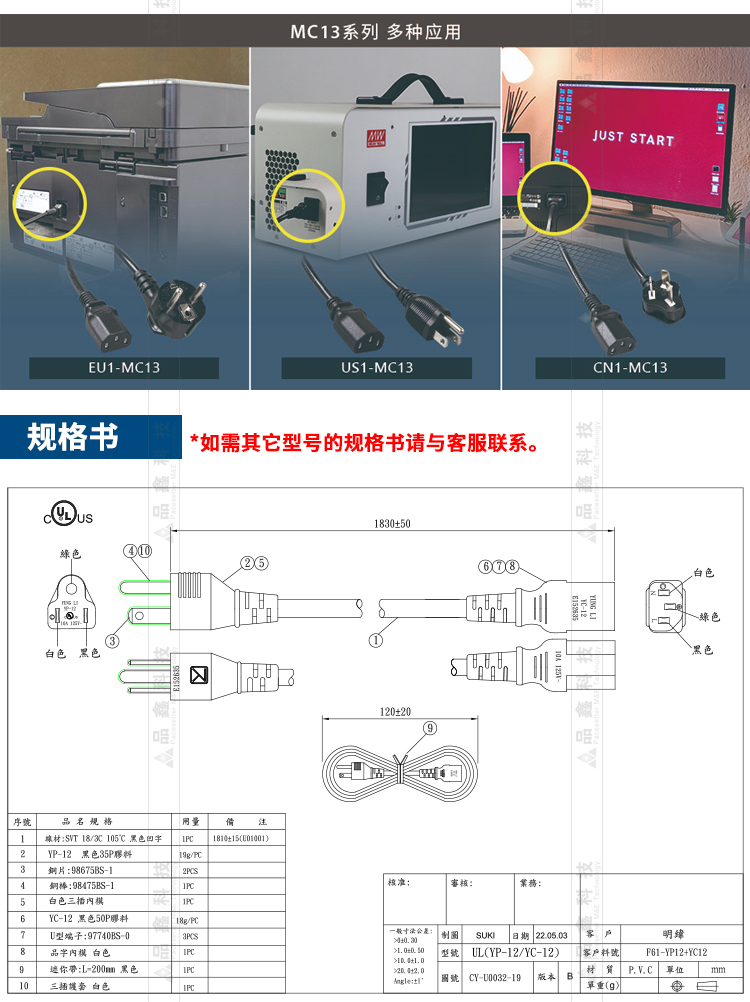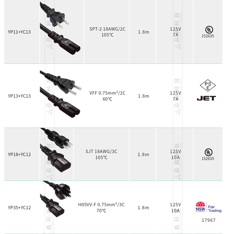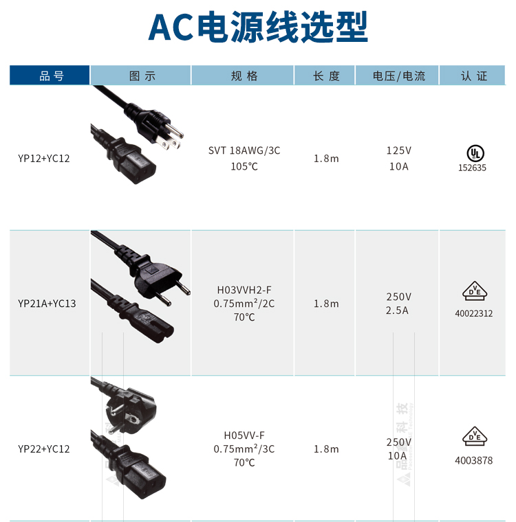 YP18+YC12明緯電源AC電源線 聯(lián)源精密 工控配件電源線材線束1.8米